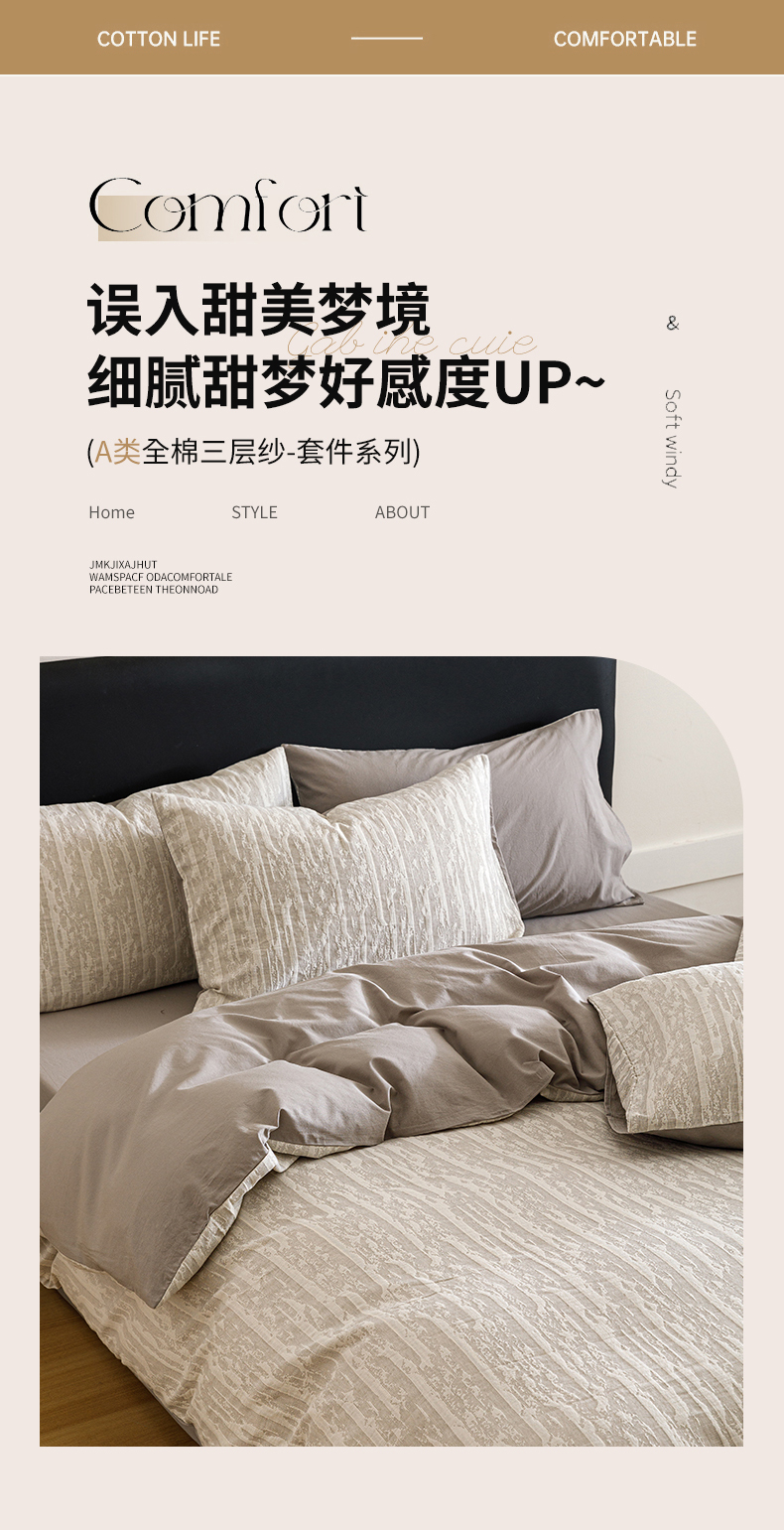 春皖家纺 2026新款A类全棉双层纱AB版简约四件套 南坪