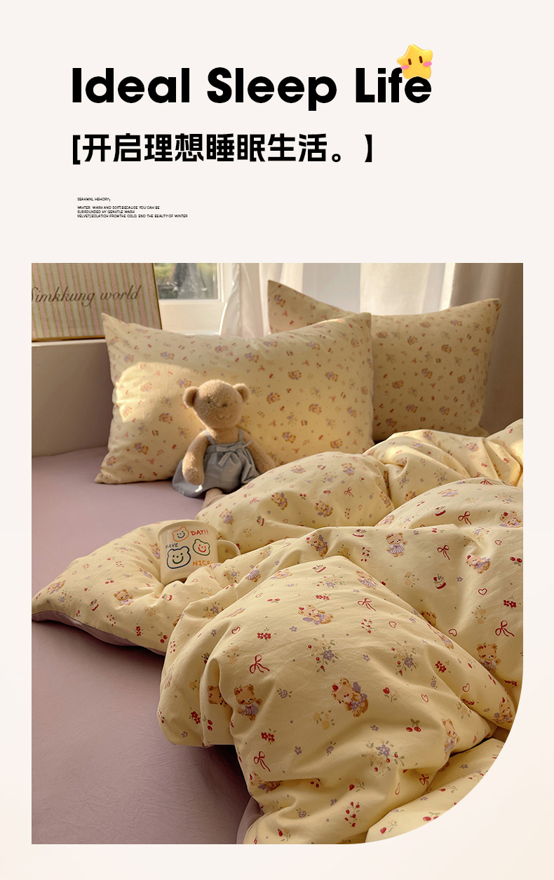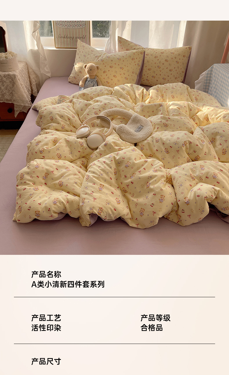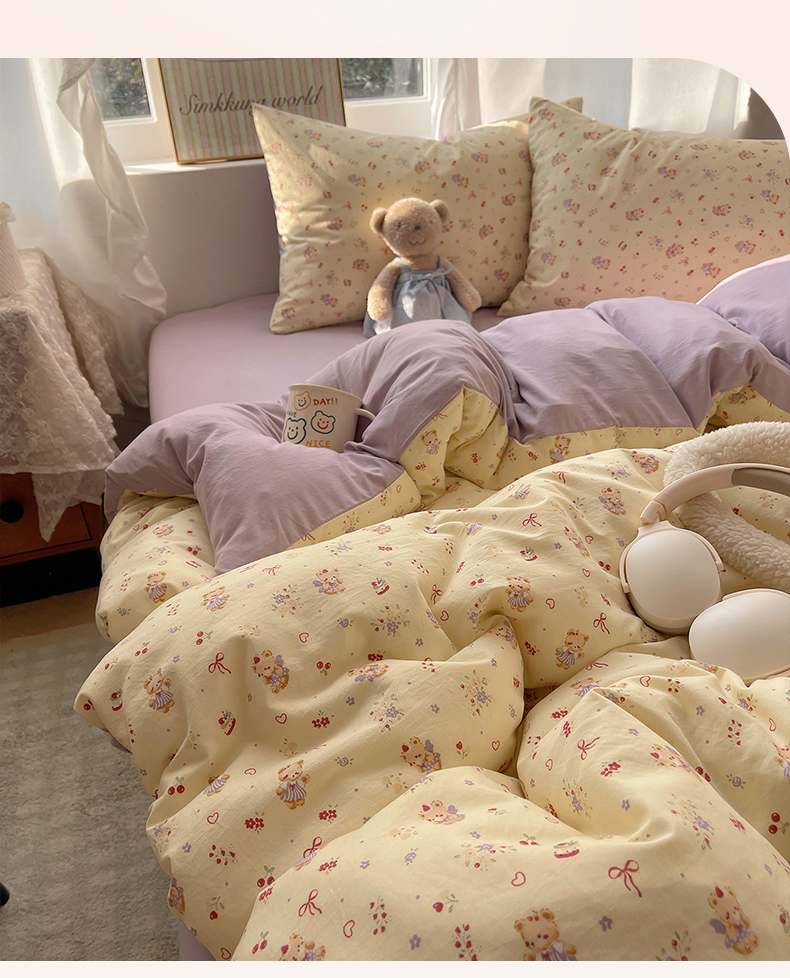 当前位置: 91家纺网 > 商品网购 > 床品套件 > 四件套 > 水洗棉四件套 > 初夏家纺 2026 古法仿棉水洗棉A类四件套被罩床单三件套床上用品卡通可爱【提供买家秀】 甜心紫熊