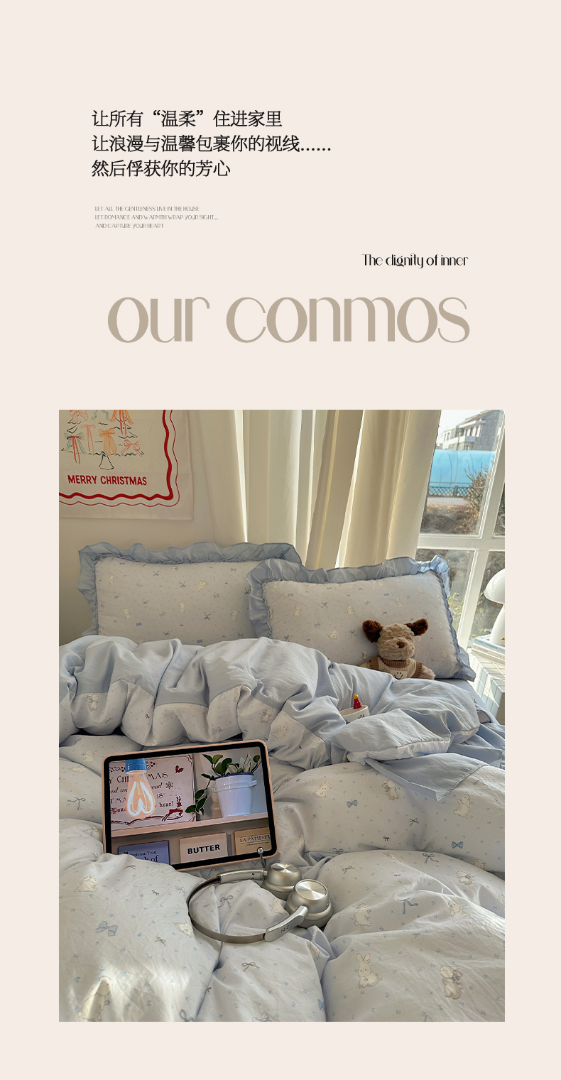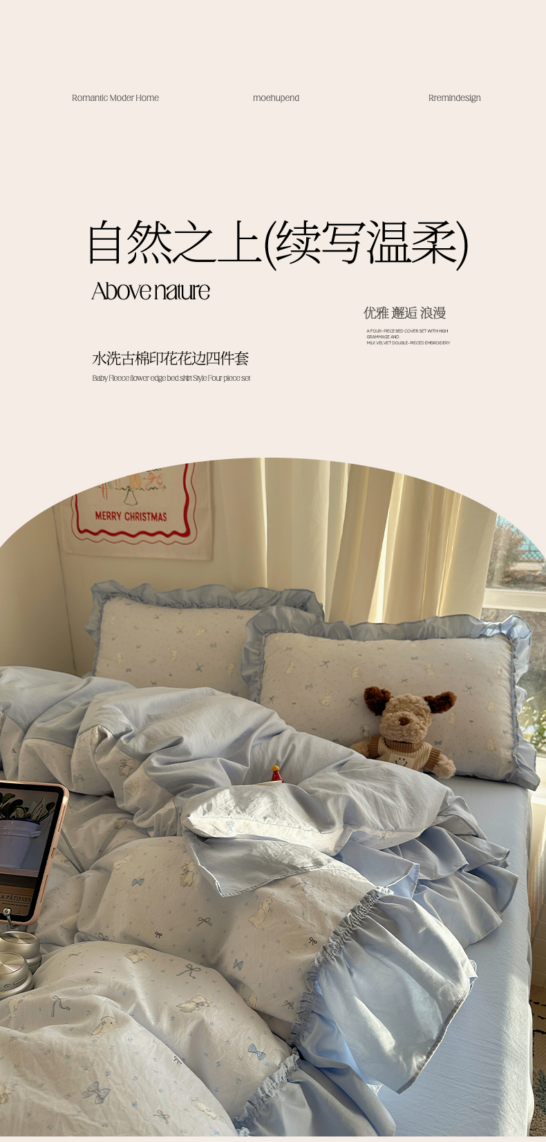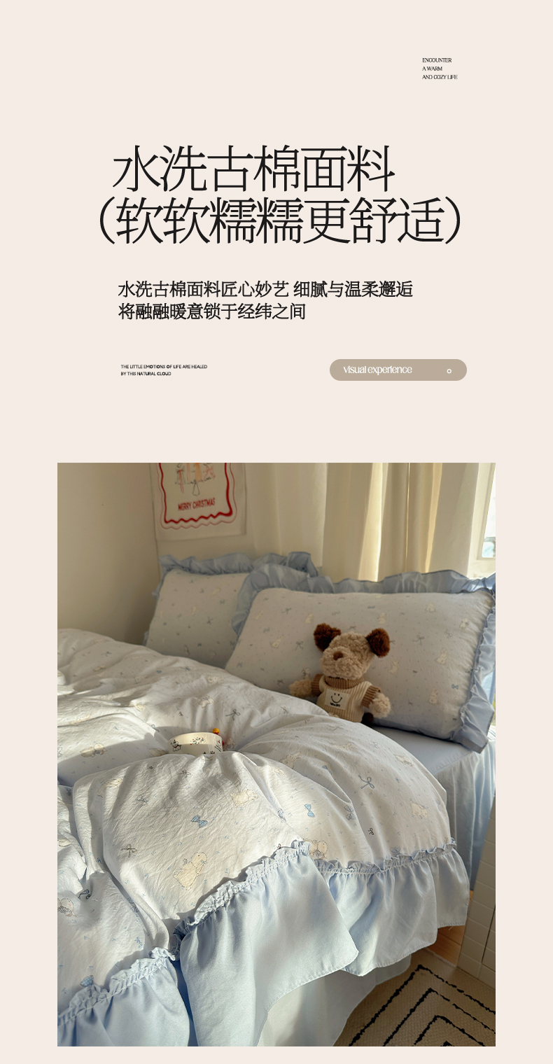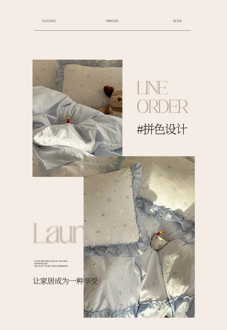 当前位置: 91家纺网 > 商品网购 > 床品套件 > 四件套 > 其它四件套 > 韩都家居 2026新款韩系大花边系列古棉四件套 蓝海