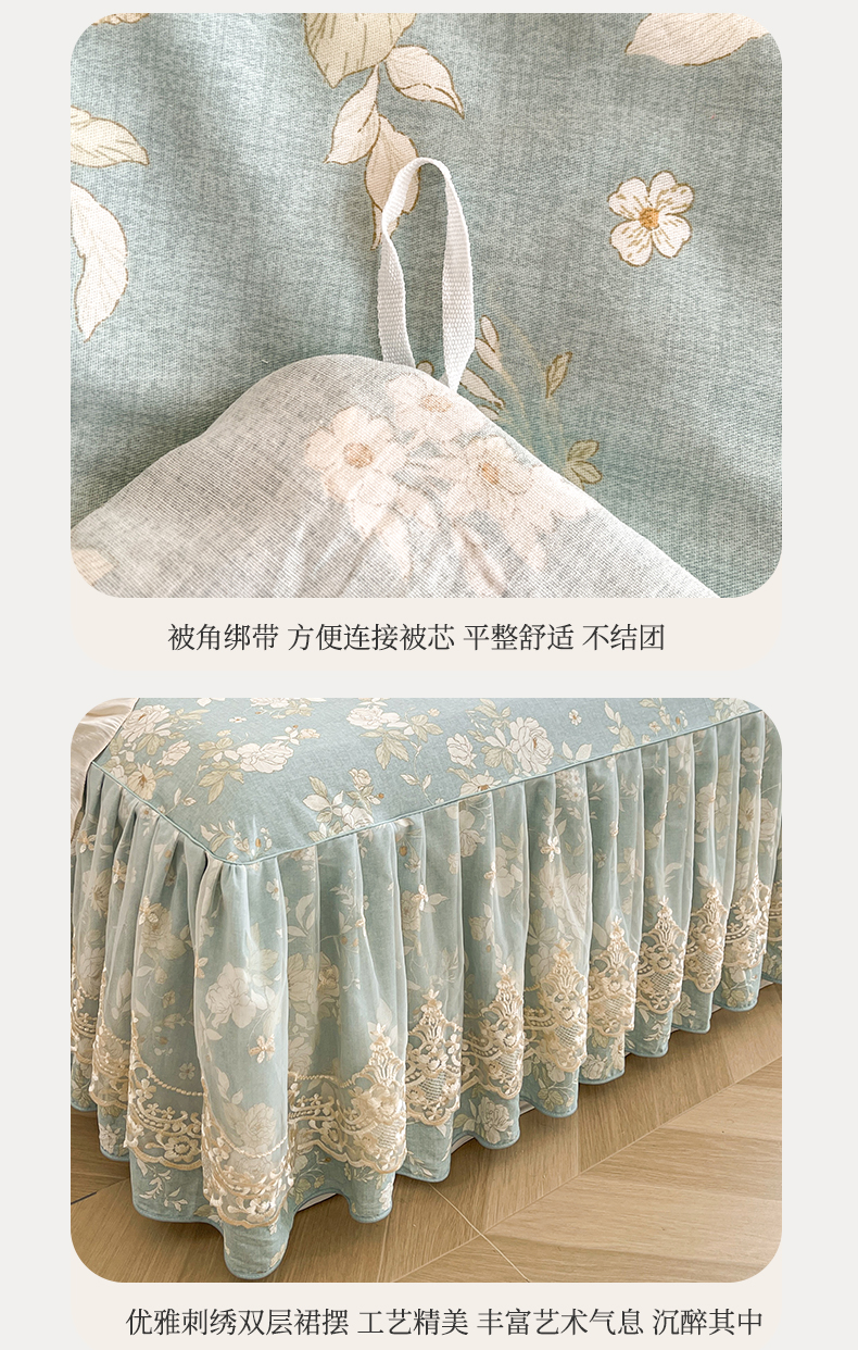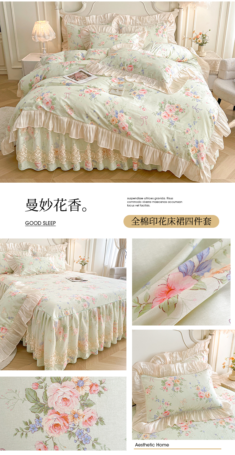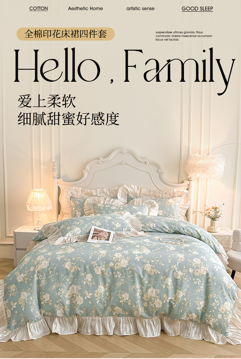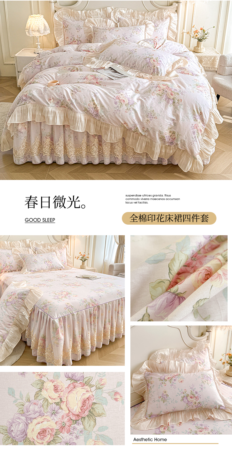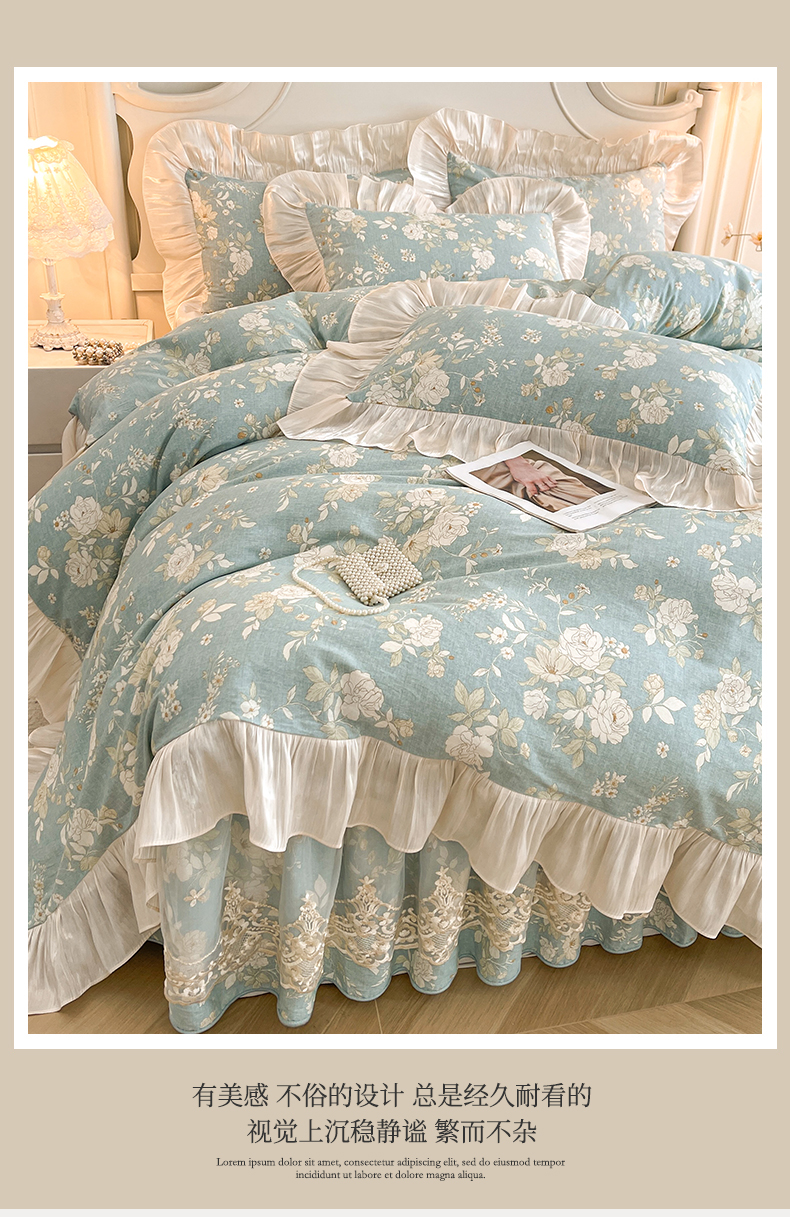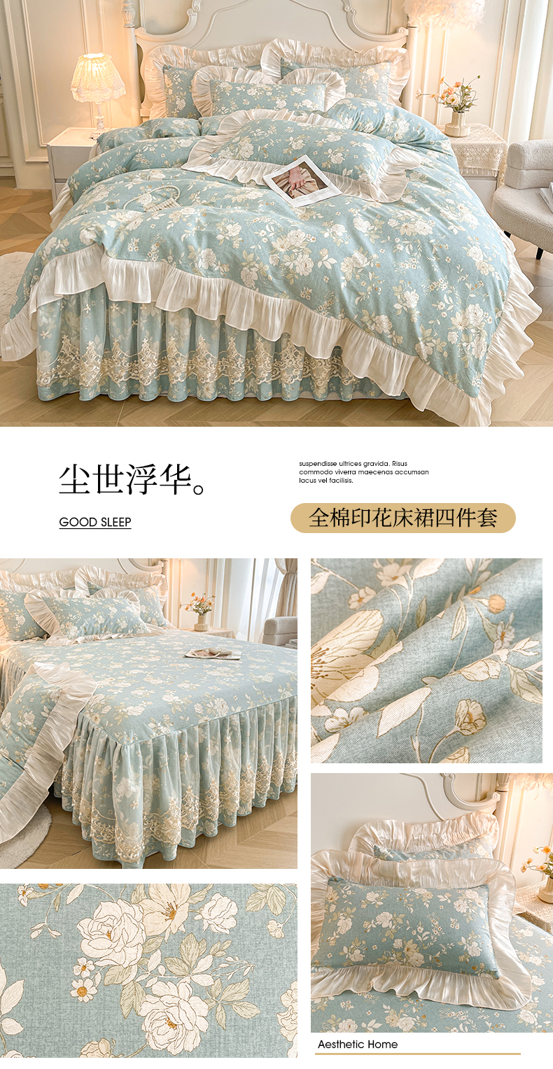 当前位置: 91家纺网 > 商品网购 > 床品套件 > 四件套 > 全棉普通四件套 > 宜凡家纺 2026新款全棉印花床裙款四件套 尘世浮华