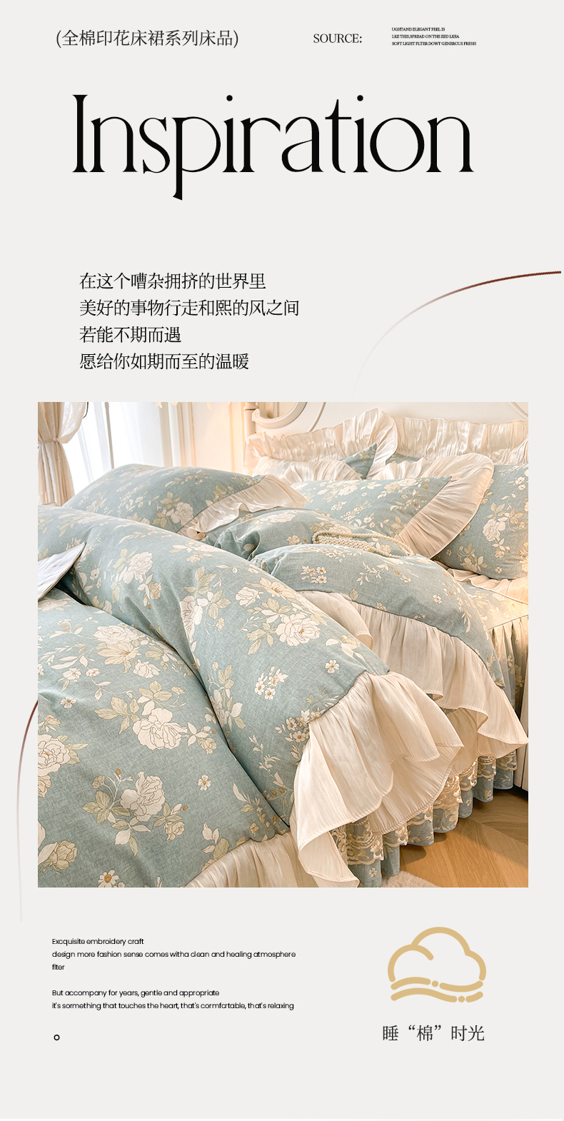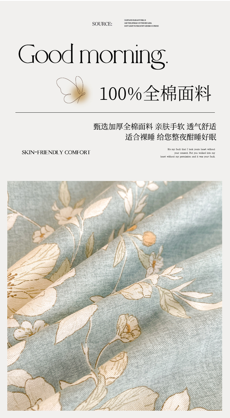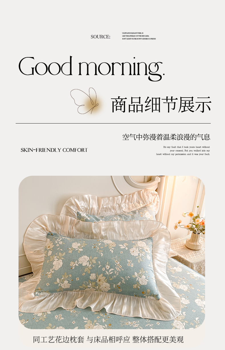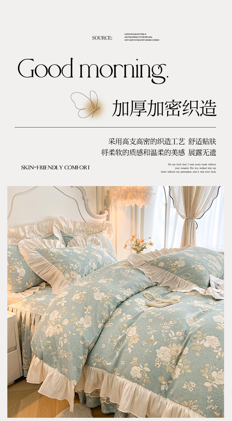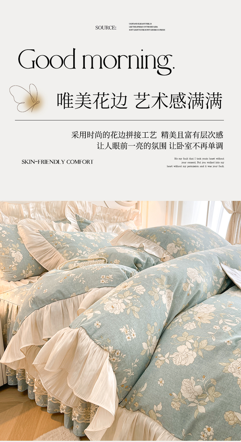 当前位置: 91家纺网 > 商品网购 > 床品套件 > 四件套 > 全棉普通四件套 > 宜凡家纺 2026新款全棉印花床裙款四件套 尘世浮华