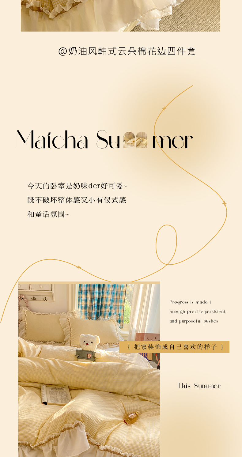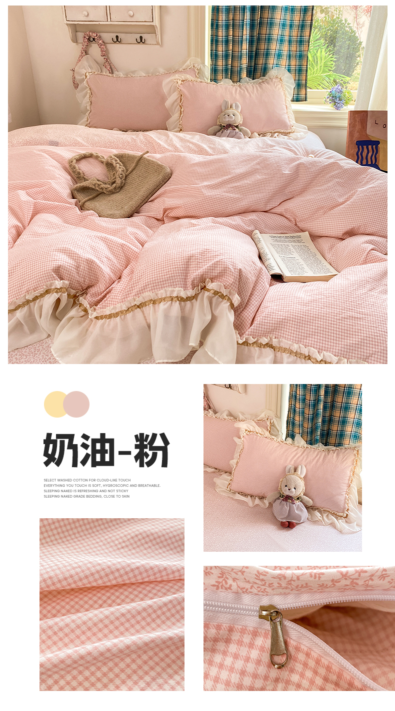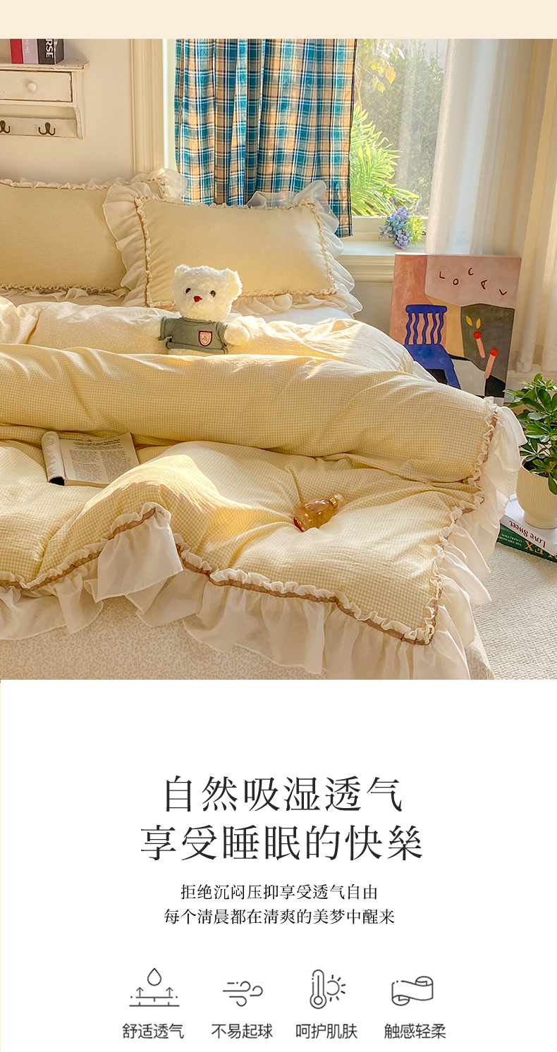 当前位置: 91家纺网 > 商品网购 > 床品套件 > 四件套 > 其它四件套 > 艺玲家纺 2026新款奶油风韩式云朵棉花边四件套 奶油-绿