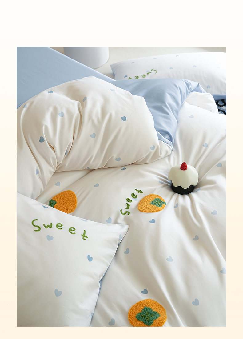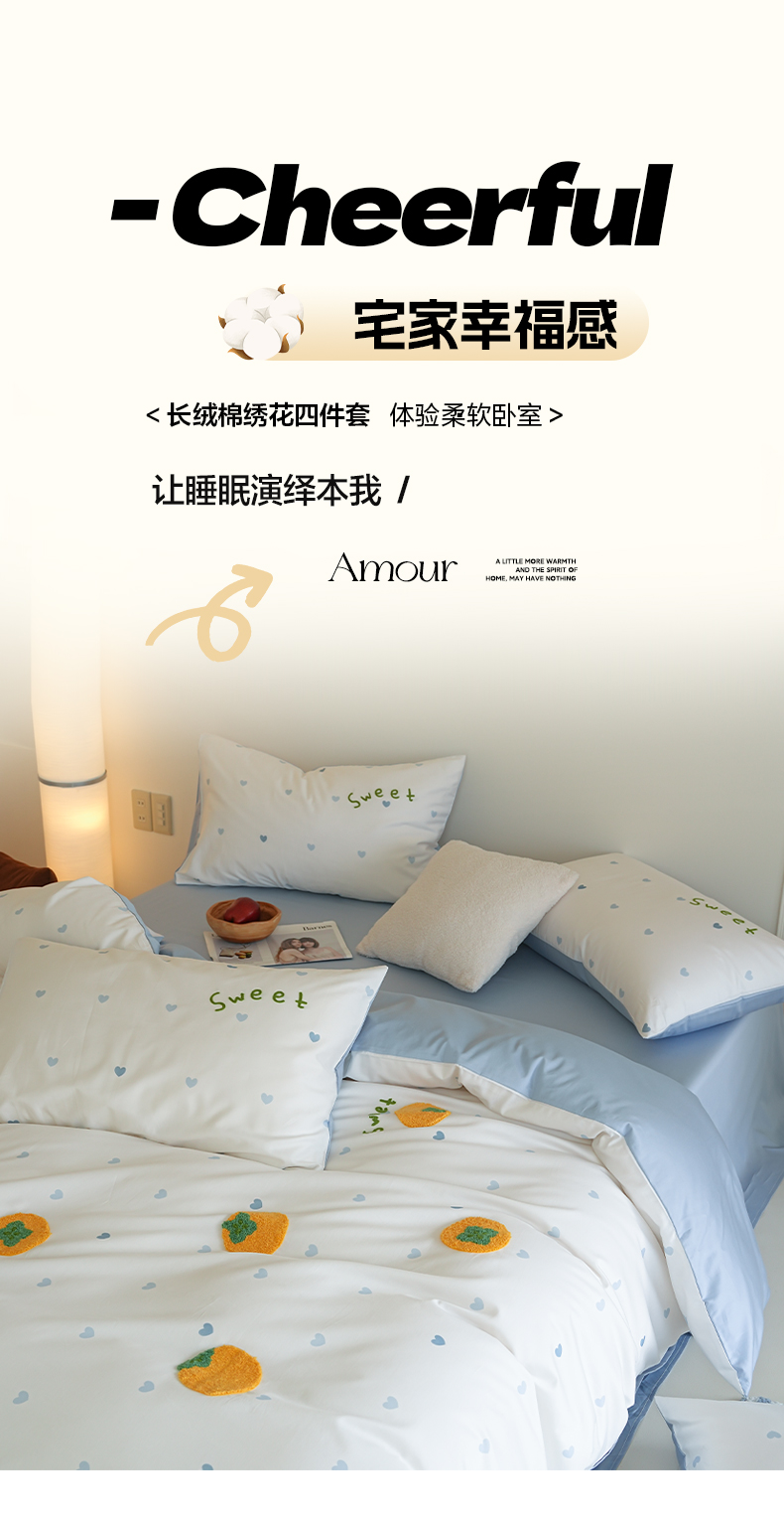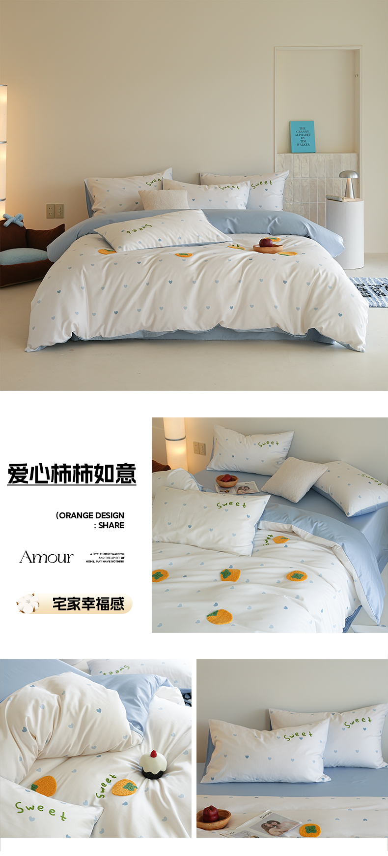(总)雅居纺家纺 2026新款50长绒棉满版绣花四件套,爱心柿柿如意,爱心西红柿,蓝色猫咪,满天星