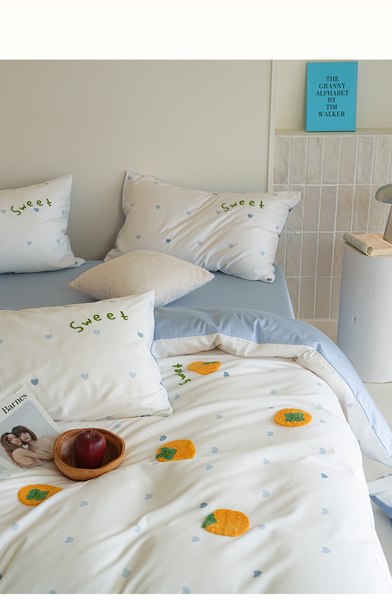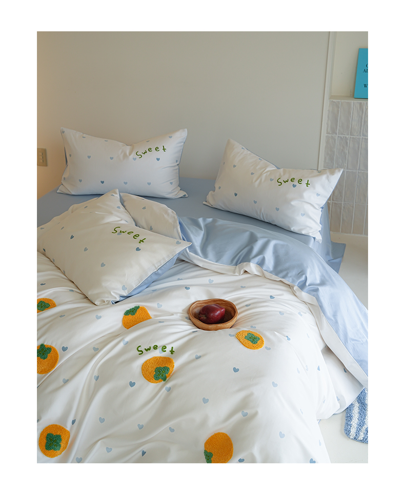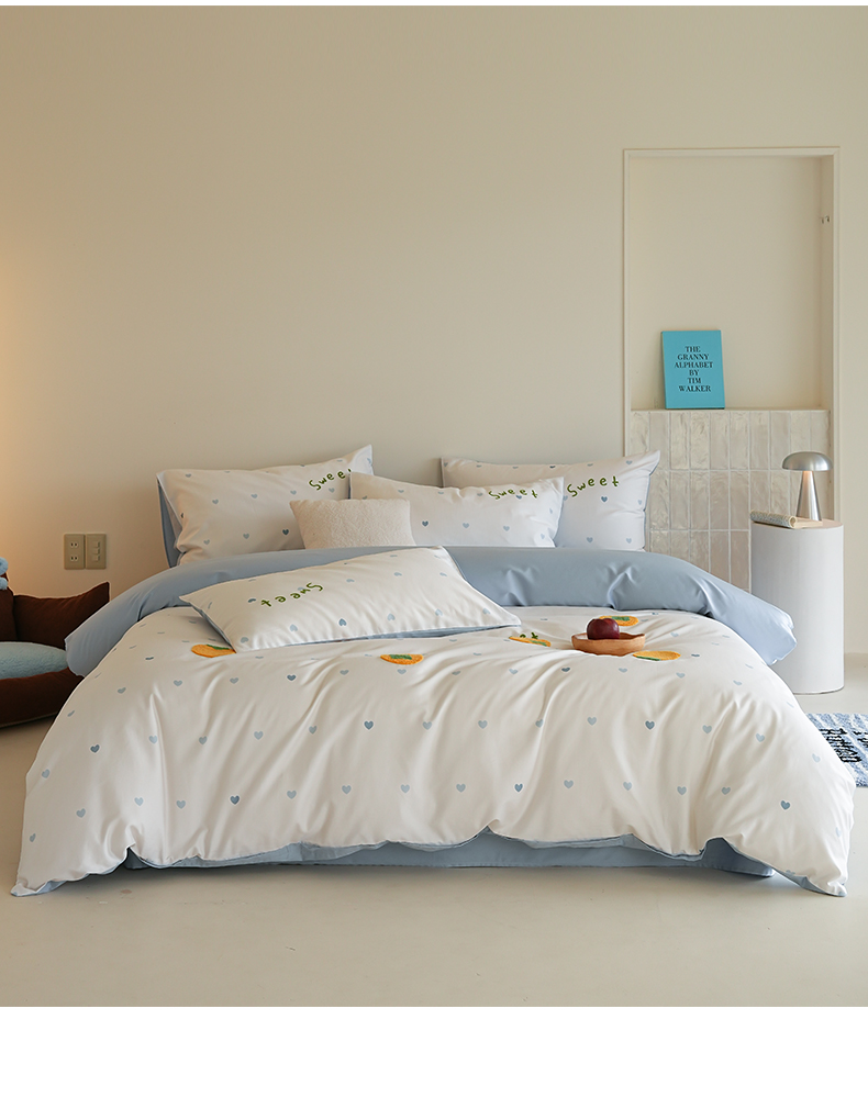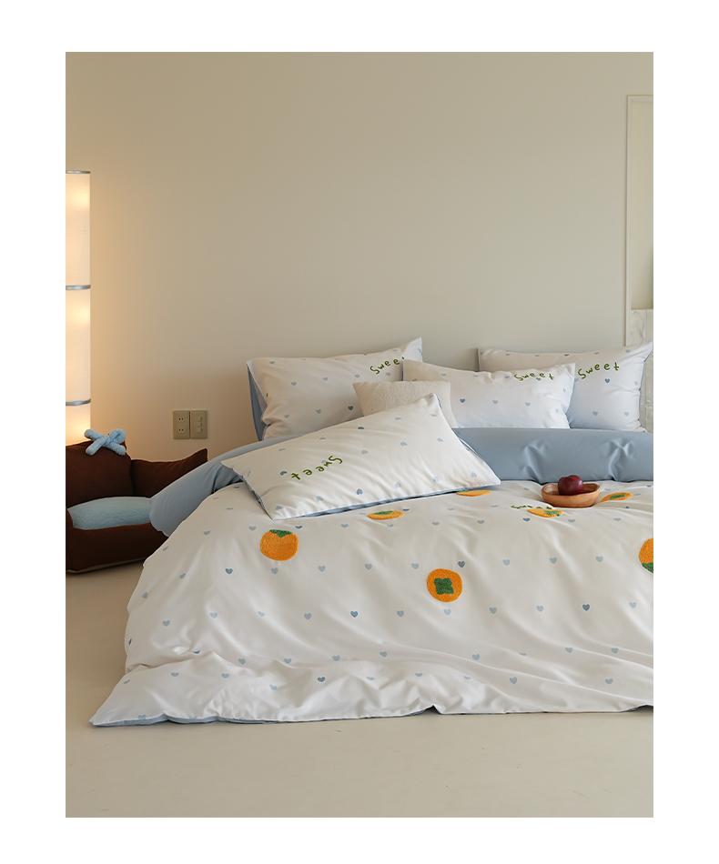 (总)雅居纺家纺 2026新款50长绒棉满版绣花四件套,爱心柿柿如意,爱心西红柿,蓝色猫咪,满天星