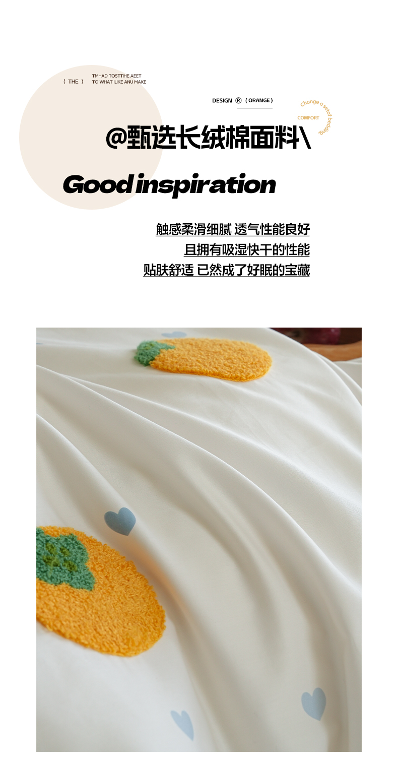 商品名称:雅居纺家纺 2026新款50长绒棉满版绣花四件套 爱心柿柿如意