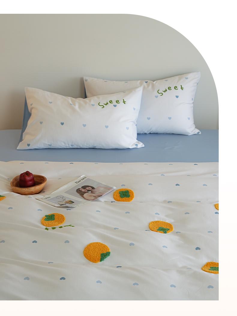 雅居纺家纺 2026新款50长绒棉满版绣花四件套 爱心柿柿如意