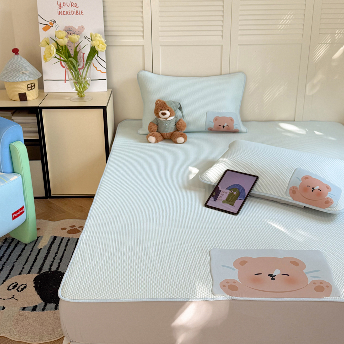 (总)GUJARY古家丽 2026新款即凉萌趣中分子床笠凉席三件套-风格一,瞌睡熊,柴多多,呆萌鸭,青呱仔,软萌喵