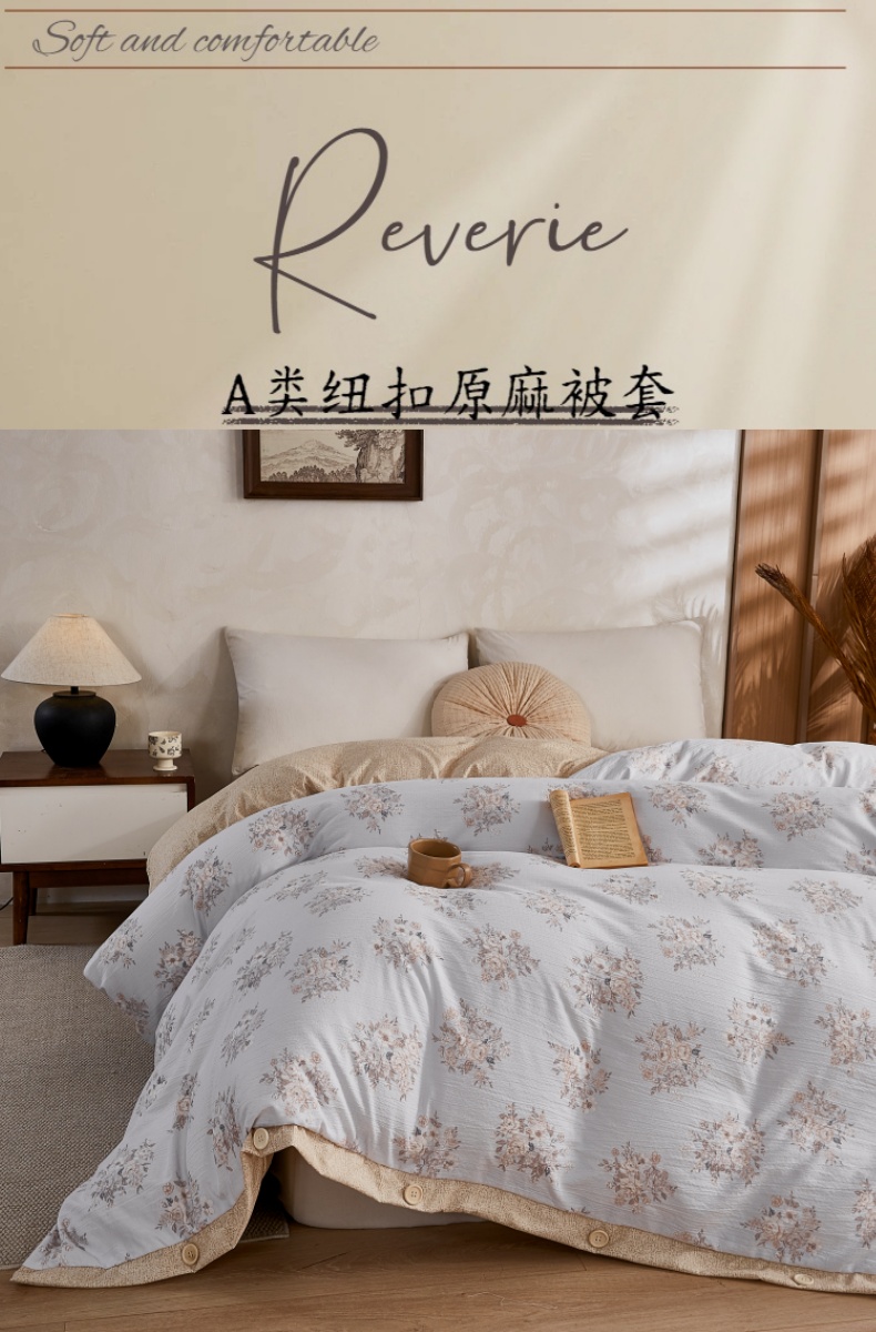 (总)圣比熊 2026新款A类原麻纽扣加厚被套床单宿舍双人床仿亚麻被子,瑞卡斯,古堡花园-咖,山花浪漫,花盏如约,安紫,花与蝶,春风序,花涧-灰,金锦,锦花,洛克-咖,沐枫,叶影,忆秋风,幽梦