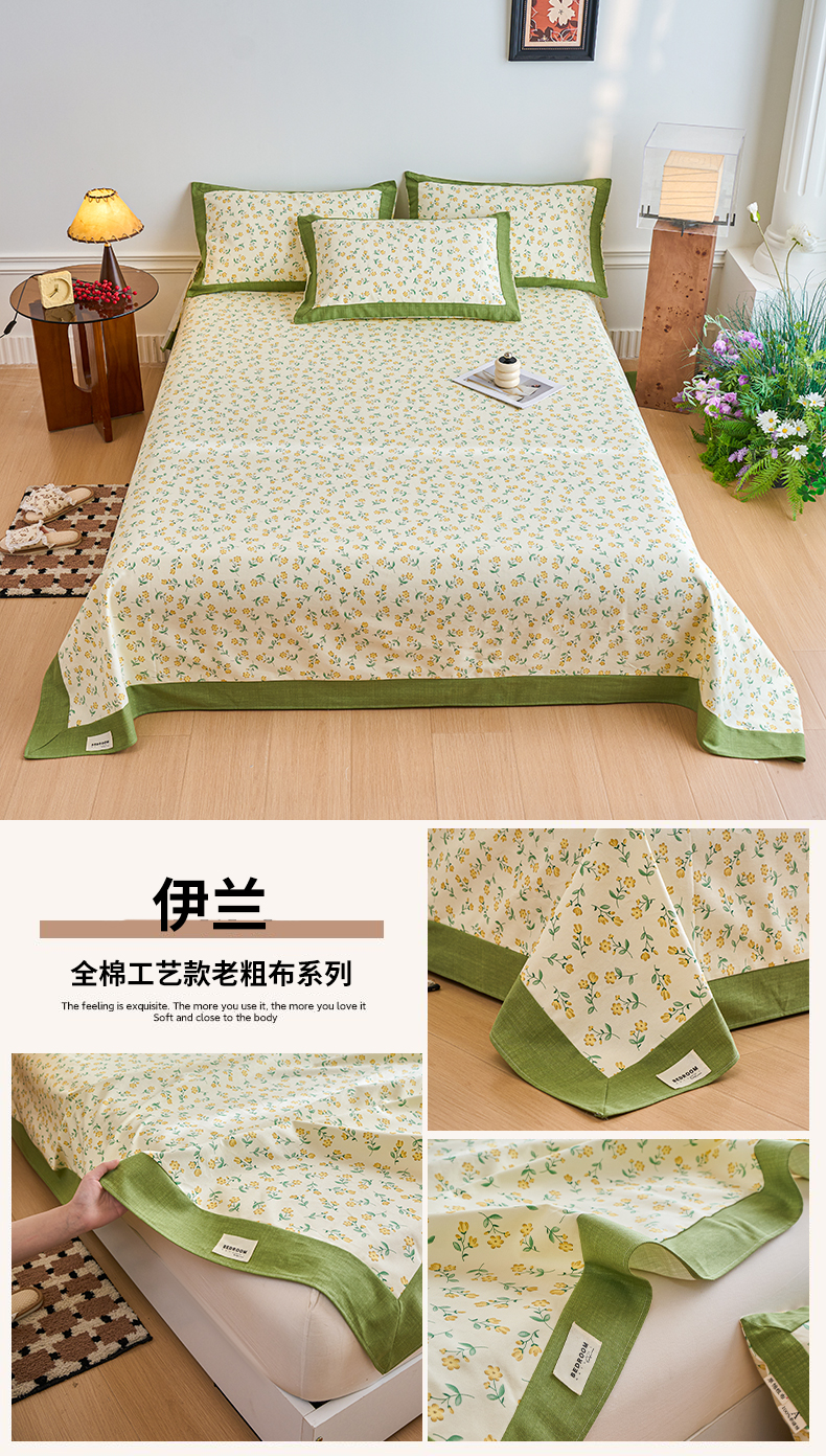 • 91家纺网 家纺一手货源 找家纺 春皖家纺 2026新款全棉老粗布席子凉席工艺款单床单床单单件 田园梦