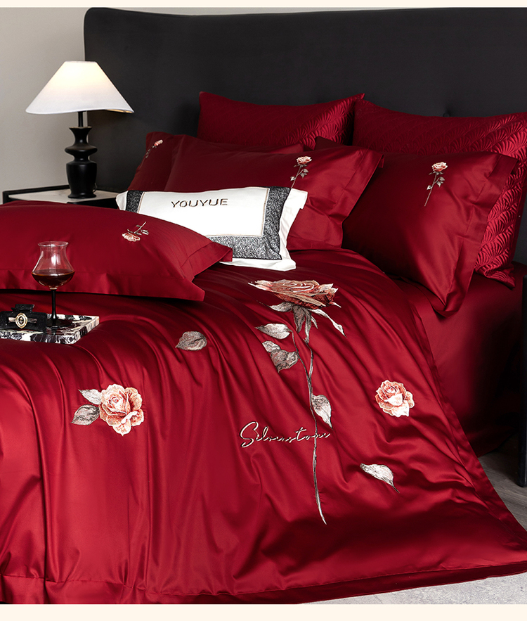 商品名称:优悦生活馆 2026新款全棉绣花大红四件套 朝露晨风-大红