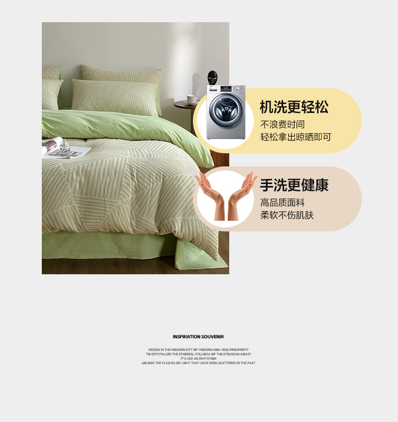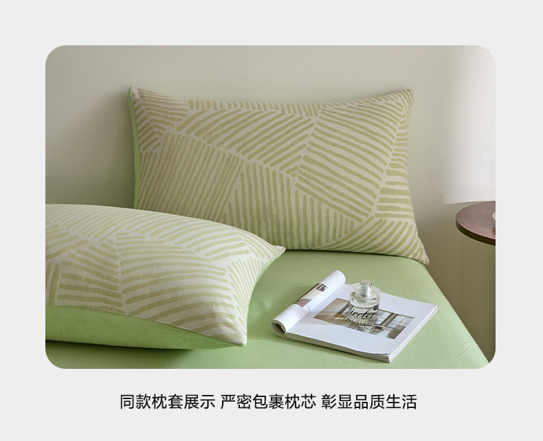 商品名称:如一 2026新款A类色织提花全棉双层纱水洗棉四件套 序章绿