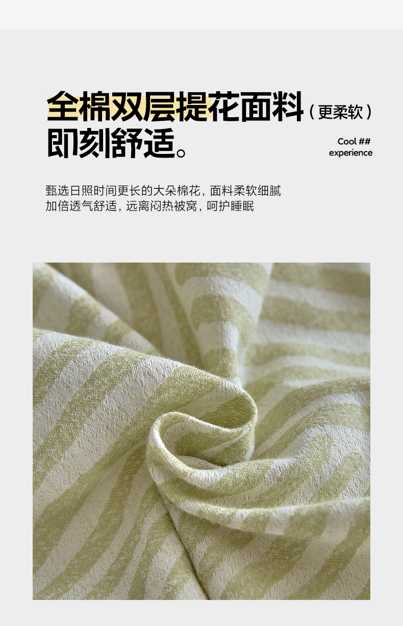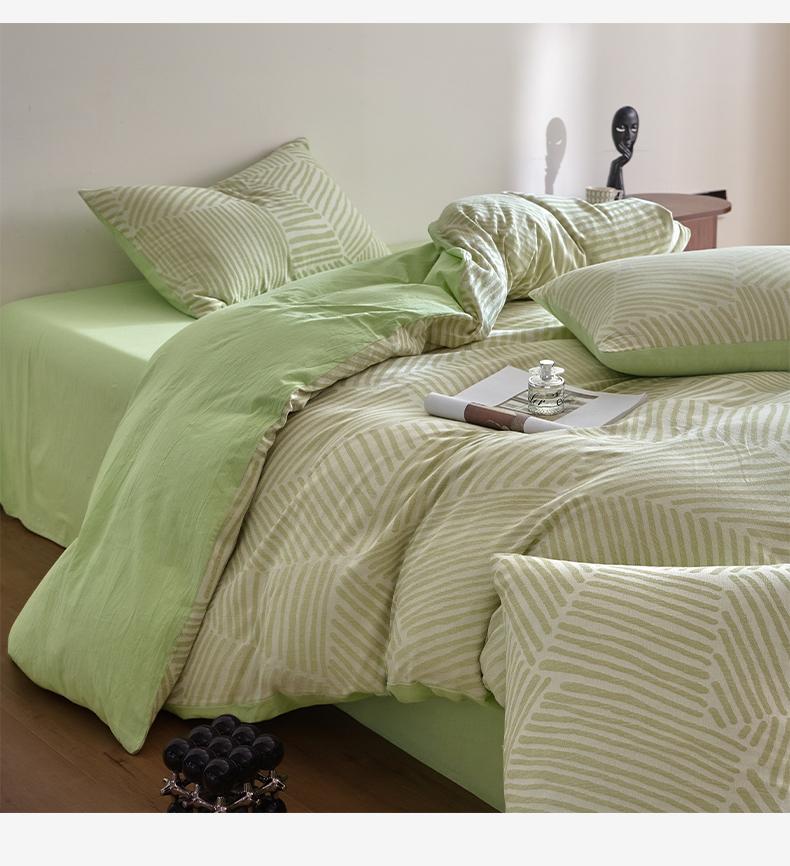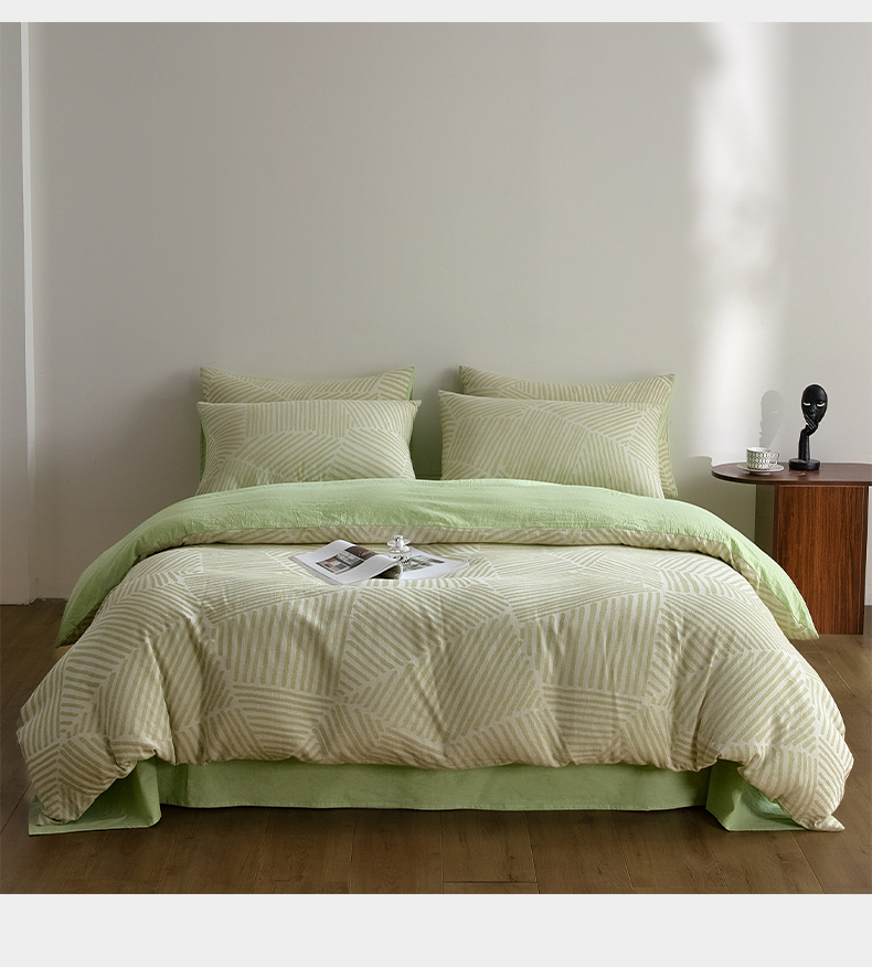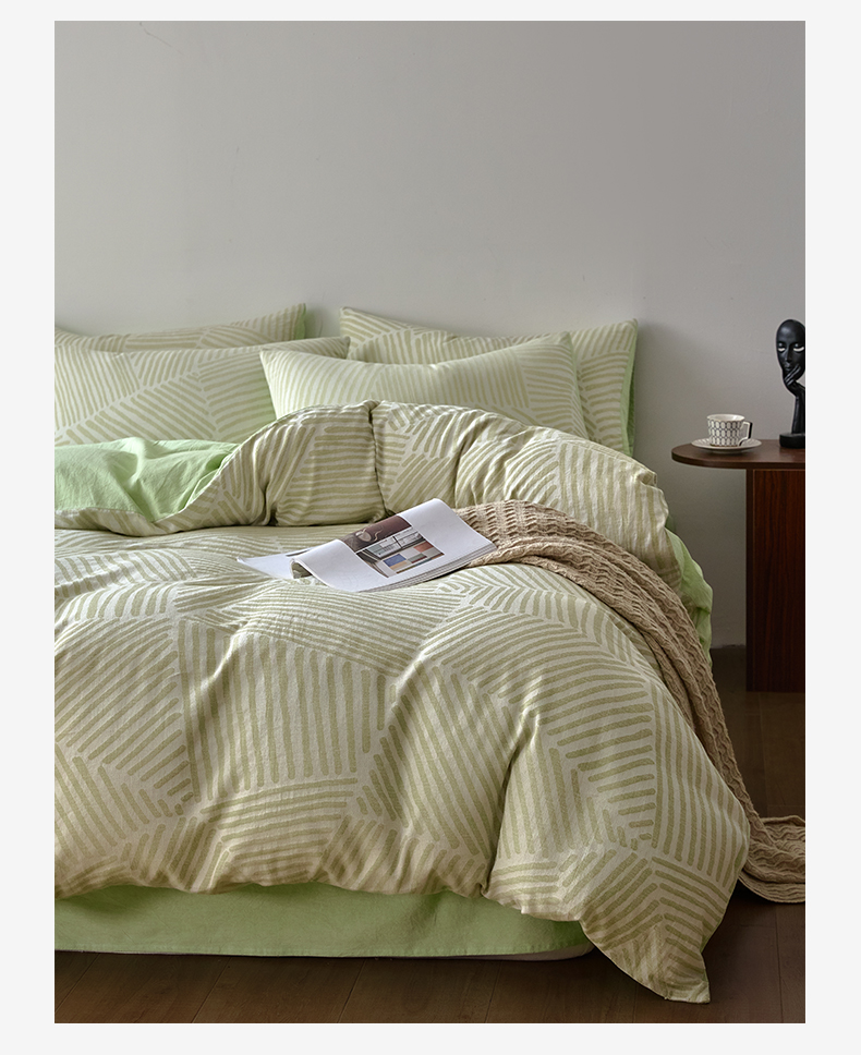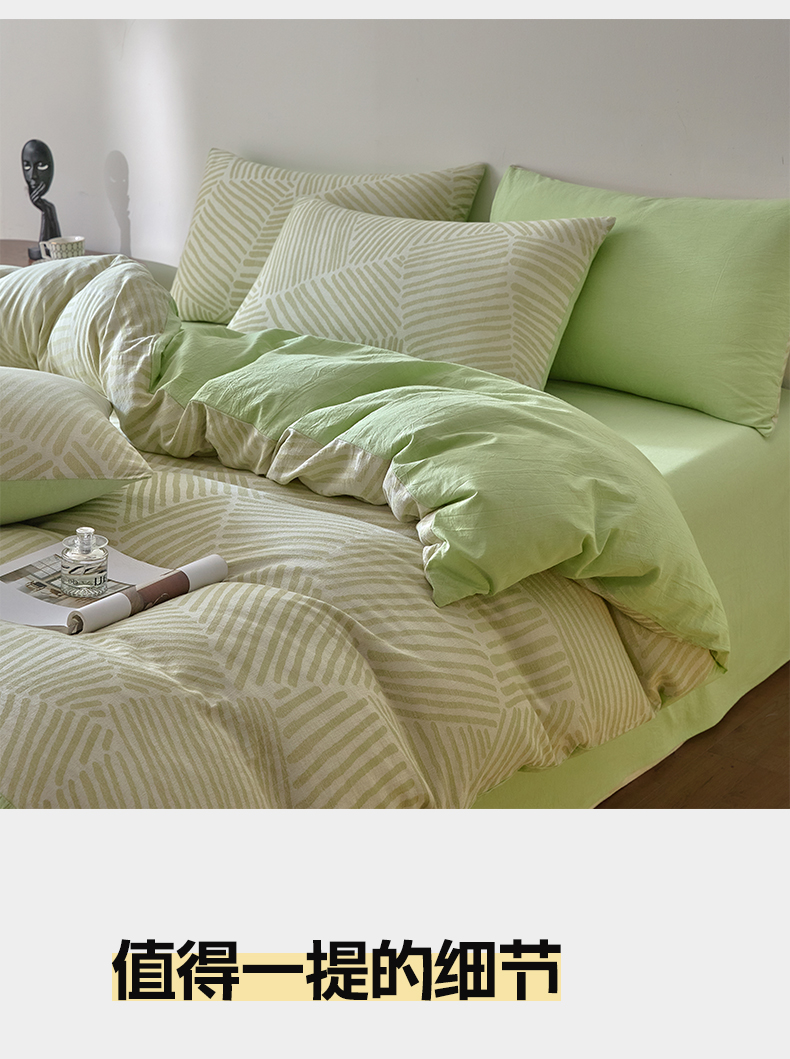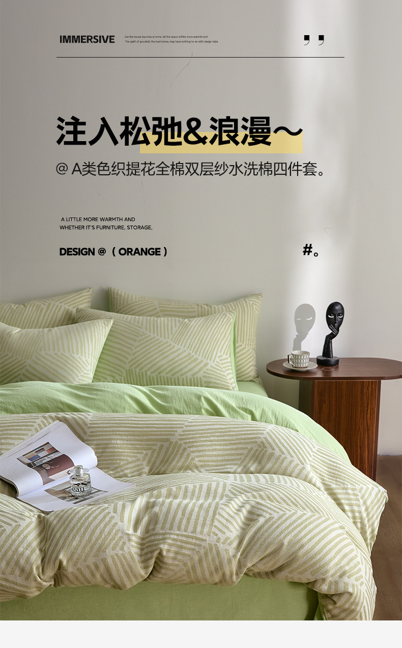 如一 2026新款A类色织提花全棉双层纱水洗棉四件套 序章绿