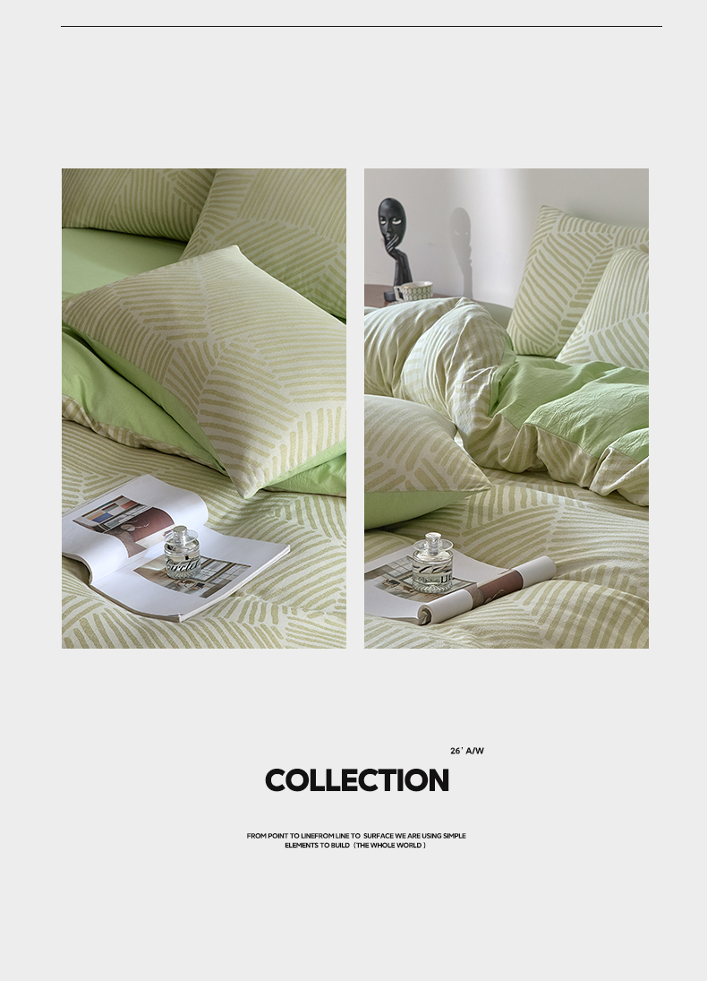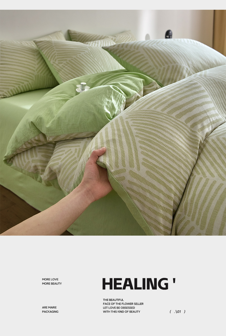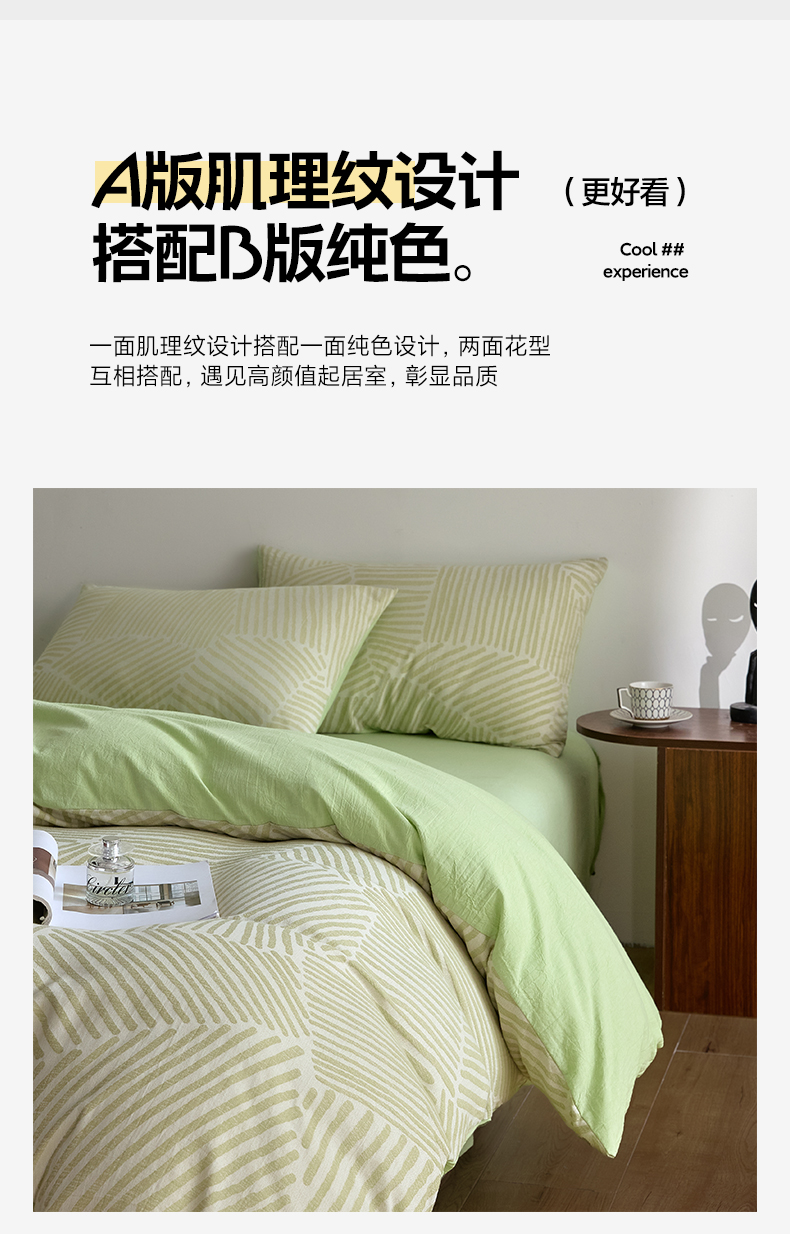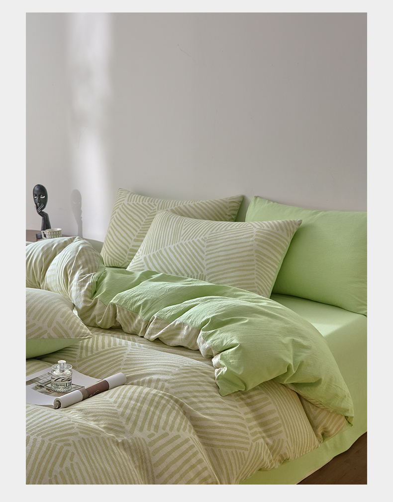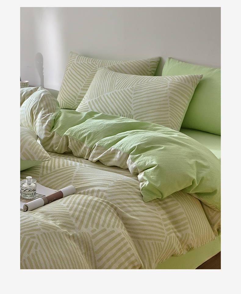 如一 2026新款A类色织提花全棉双层纱水洗棉四件套 序章绿