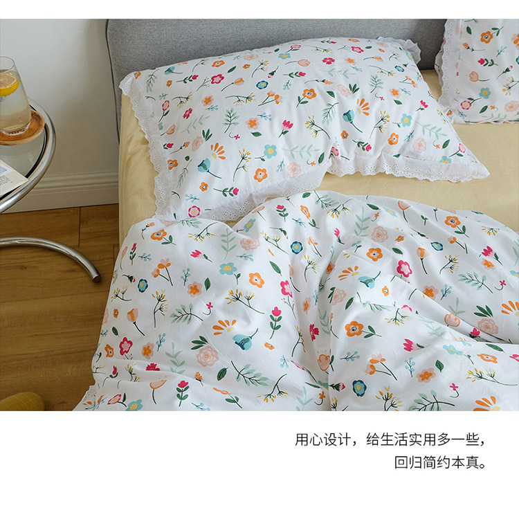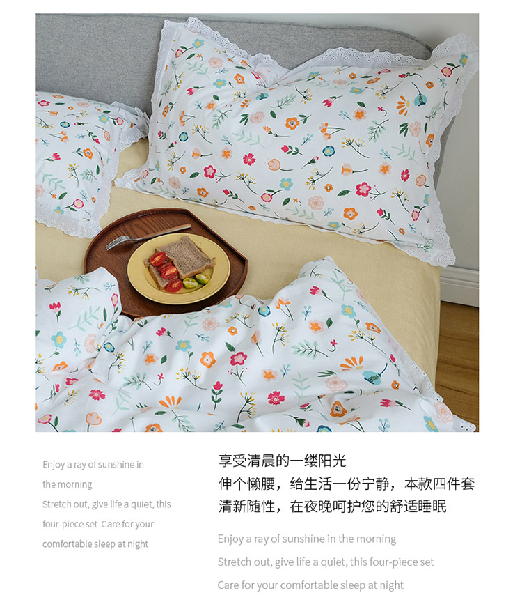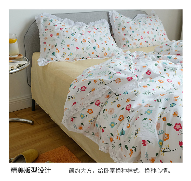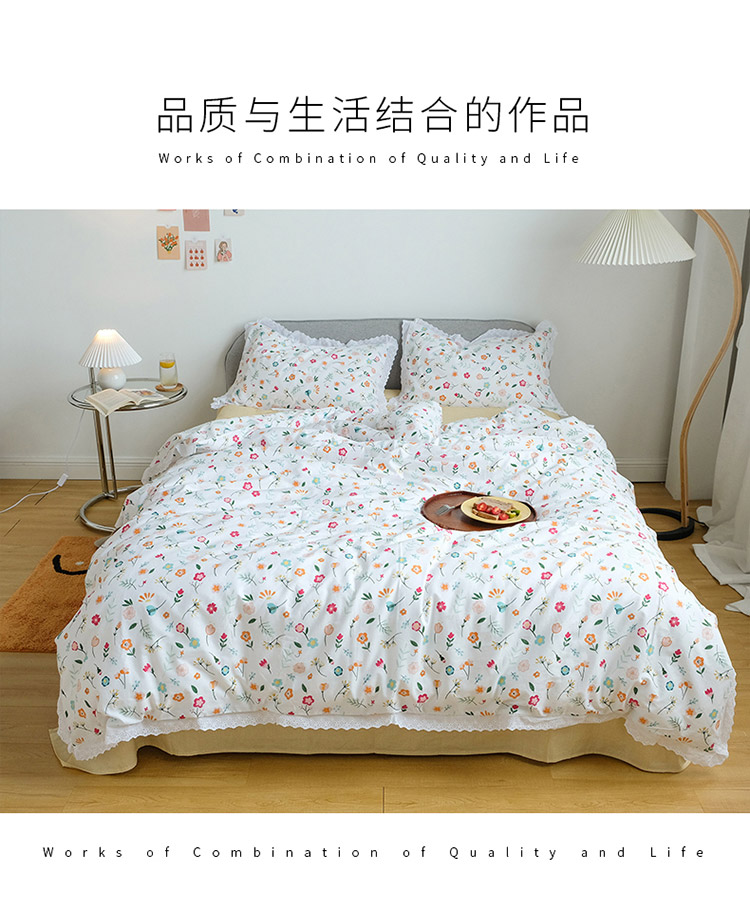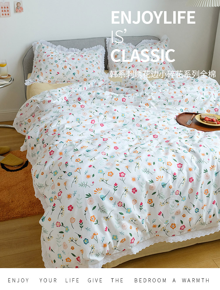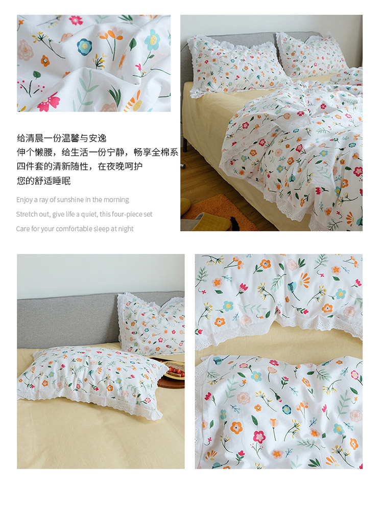 商品名称:艾沁 2020新款韩国刺绣花边小碎花纯棉四件套 阳菜