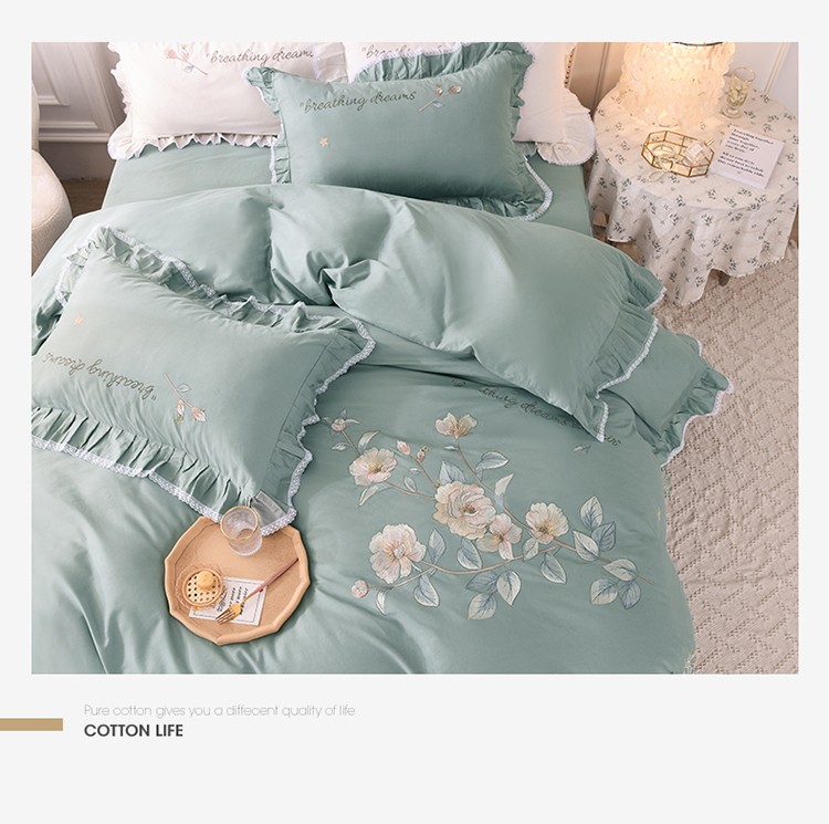 商品名称:迪欧芙 2023新款纯棉全棉喷气13372公主风素锦系列四件套绿色