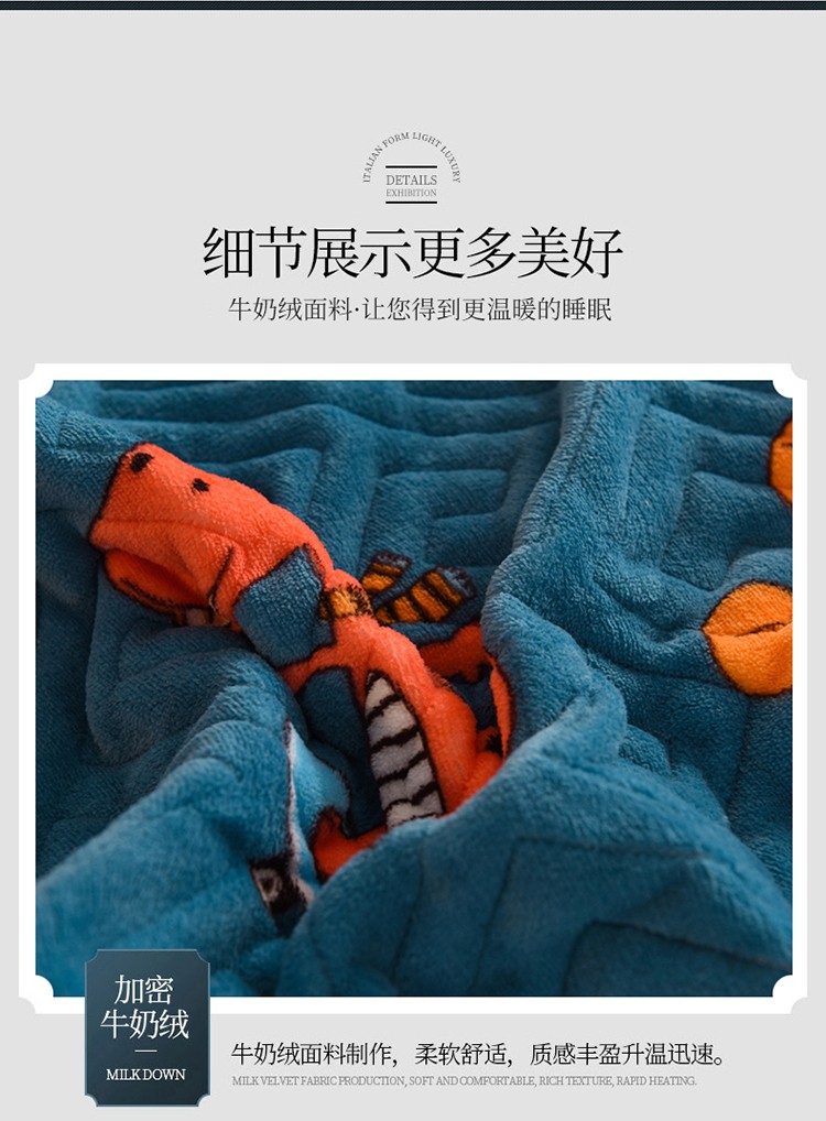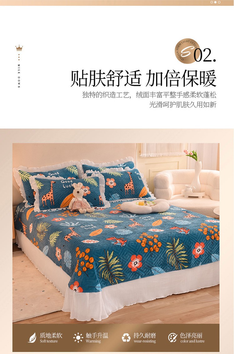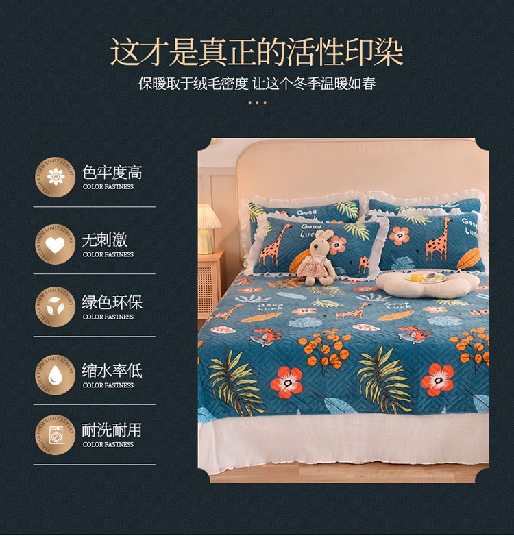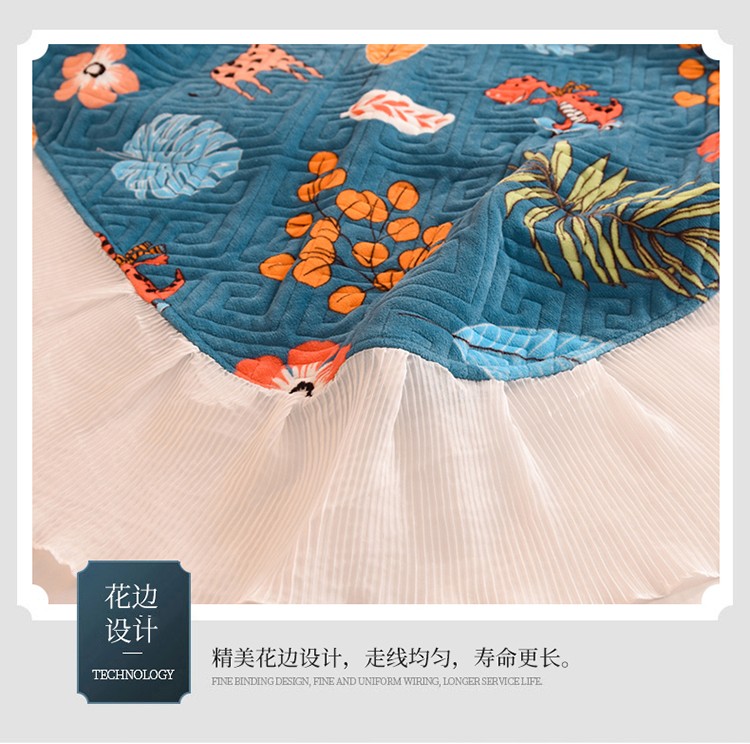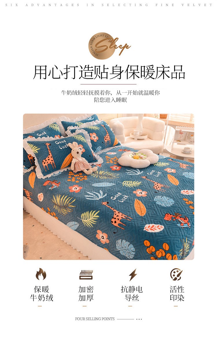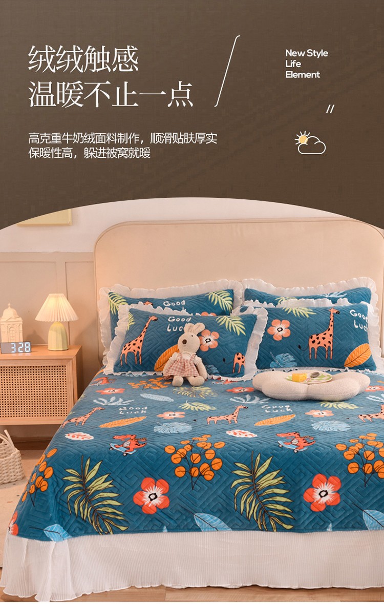 商品名称:2025新款牛奶绒印花夹棉花边 单品床盖 动物乐园
