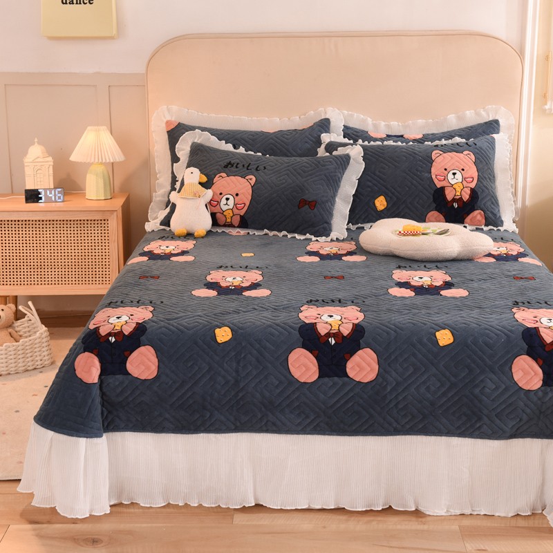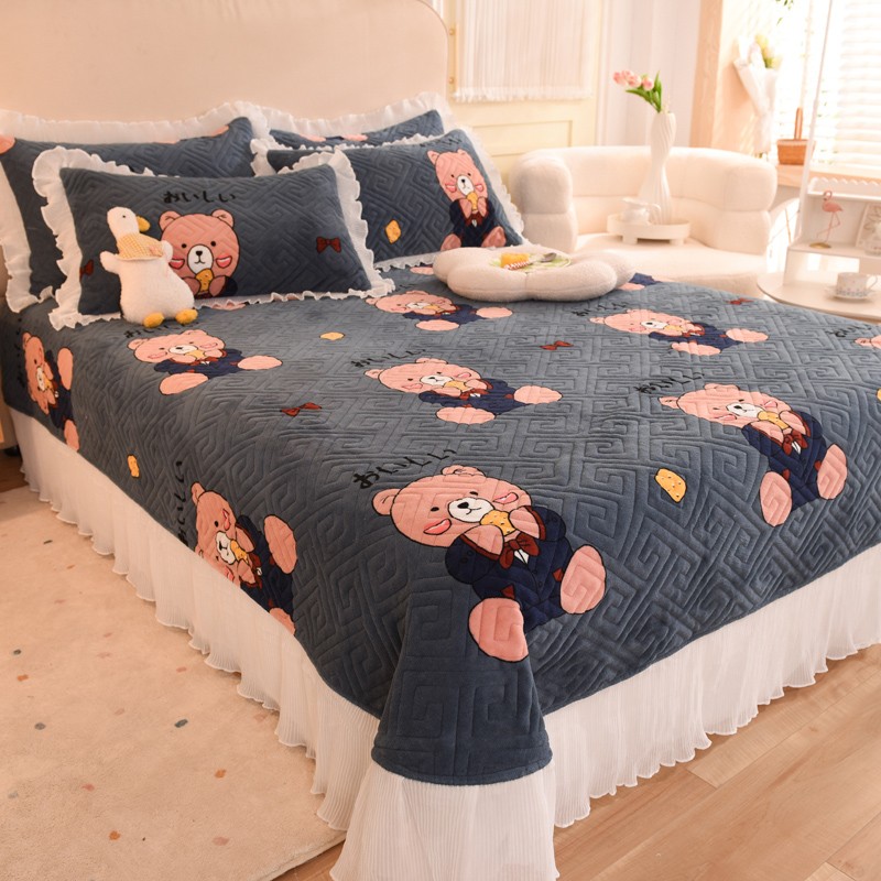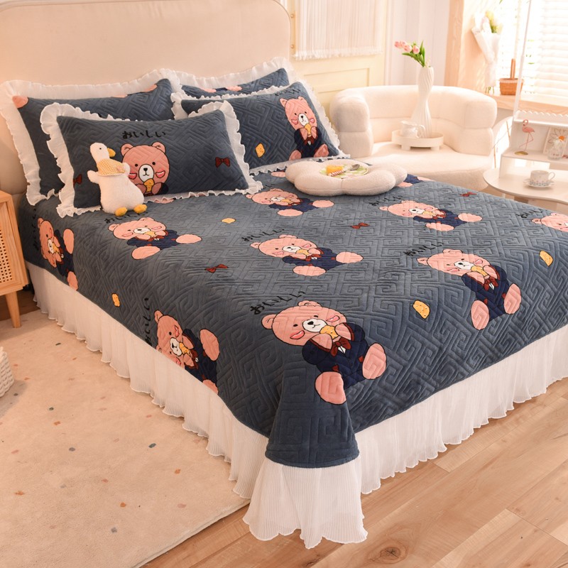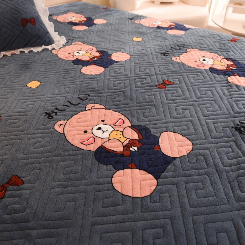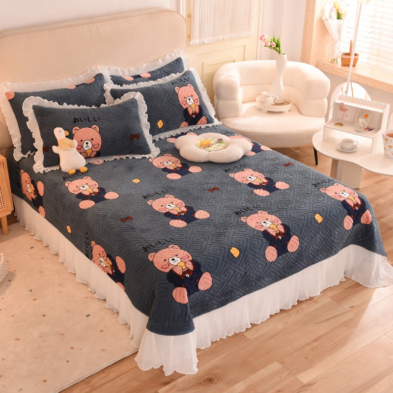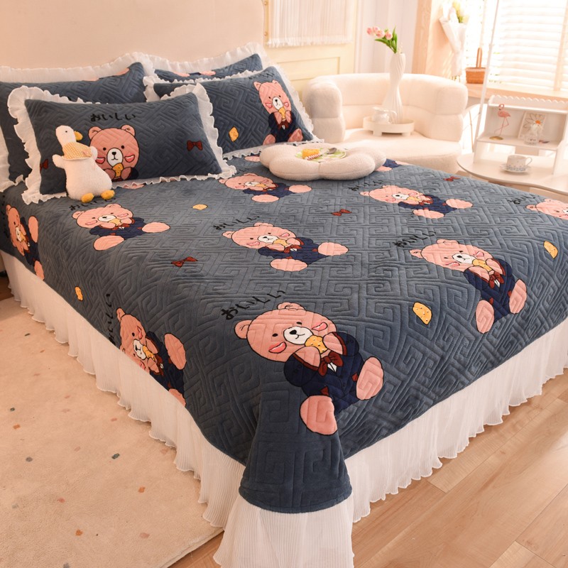 2025新款牛奶绒印花夹棉花边 单品床盖 雪花熊