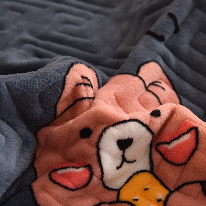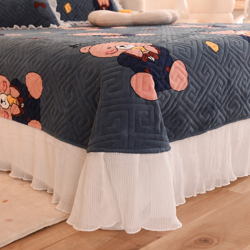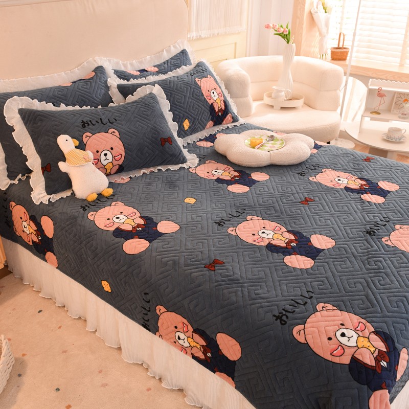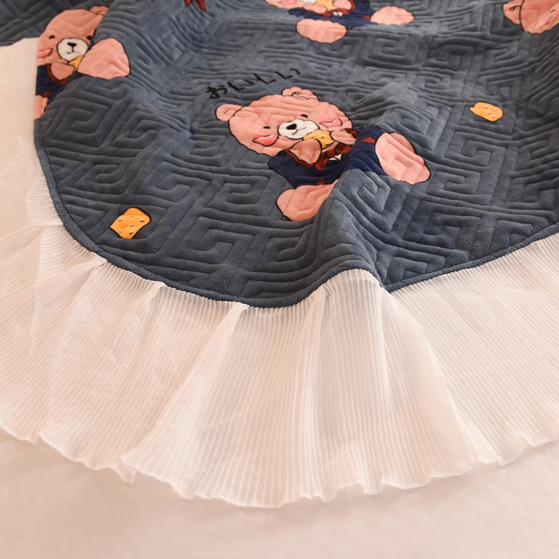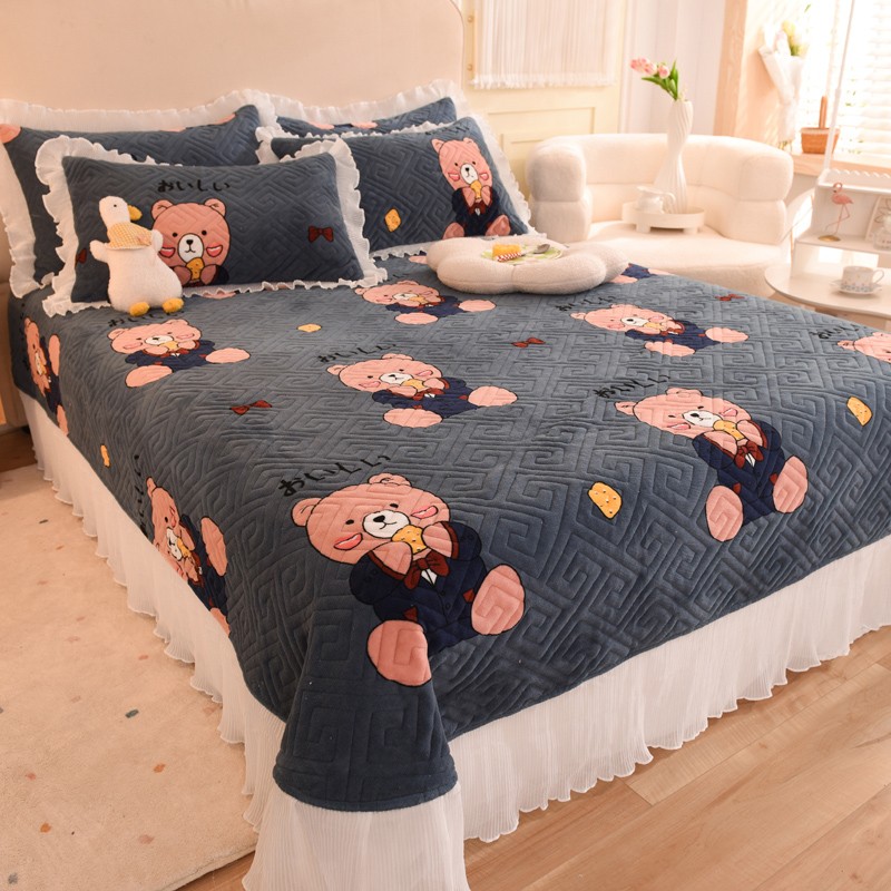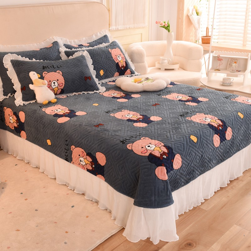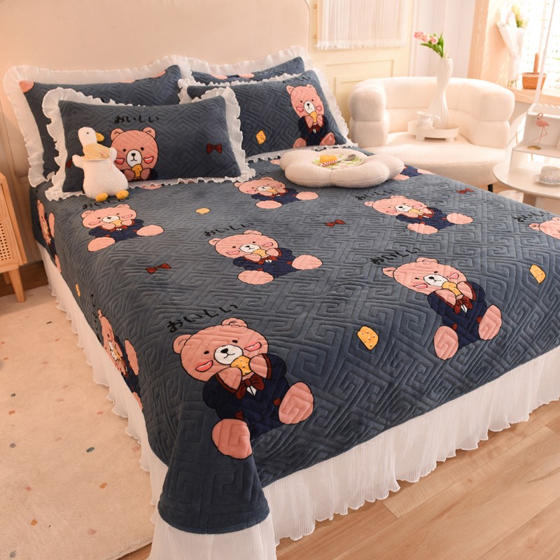 2025新款牛奶绒印花夹棉花边 单品床盖 雪花熊