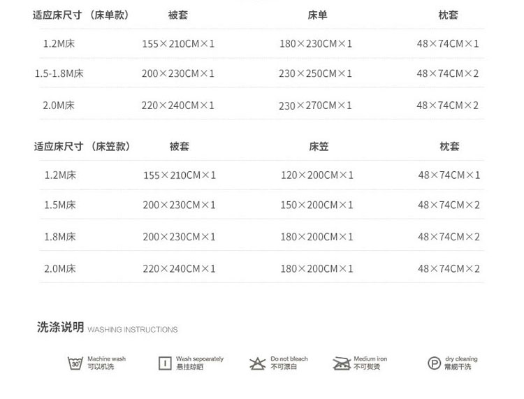 1.8m床笠款四件套 | ¥115.00 |