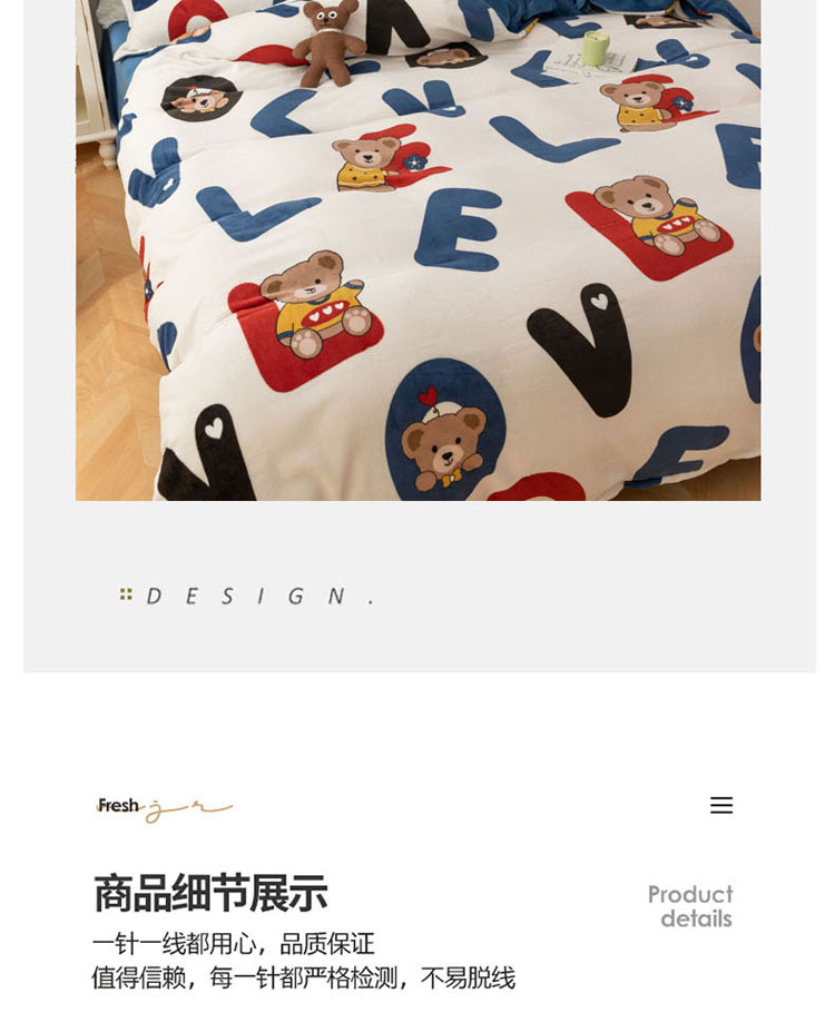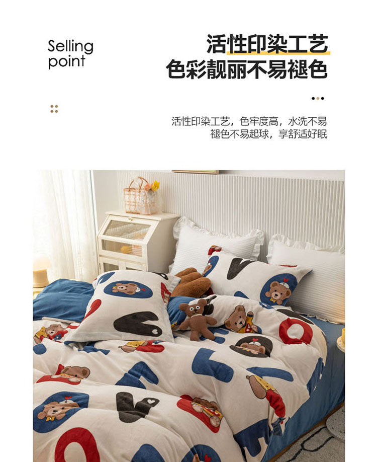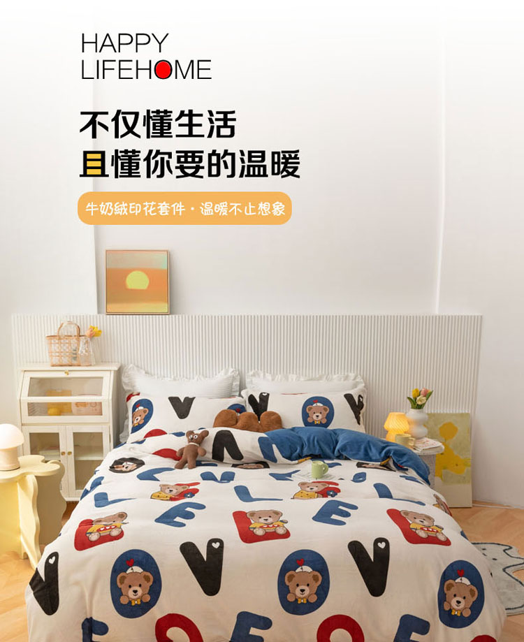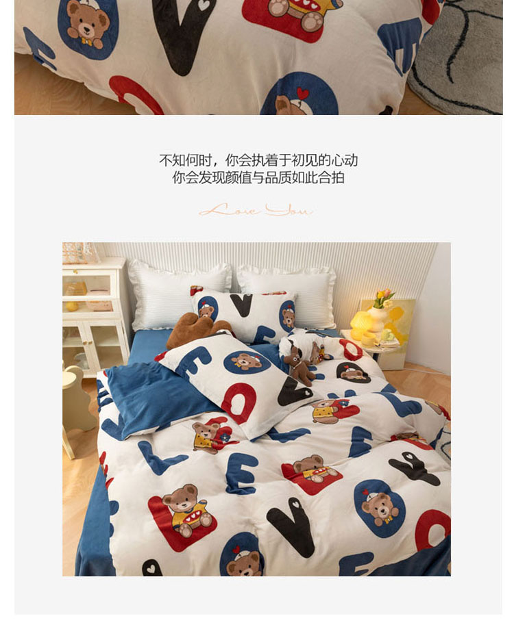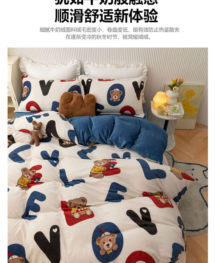 当前位置: 91家纺网 > 商品网购 > 床品套件 > 四件套 > 牛奶绒四件套 > 梦家居 2022新款秋冬牛奶绒四件套 字母小熊