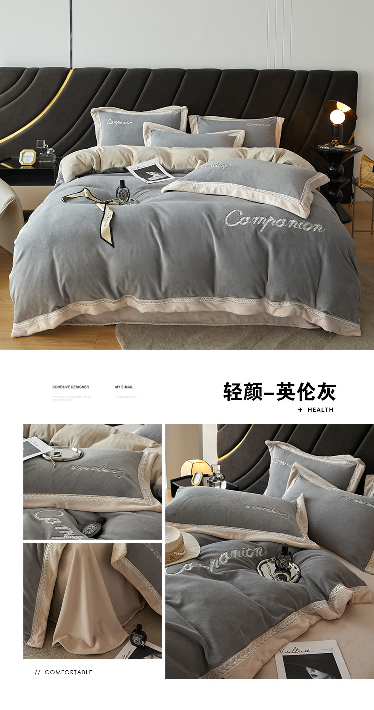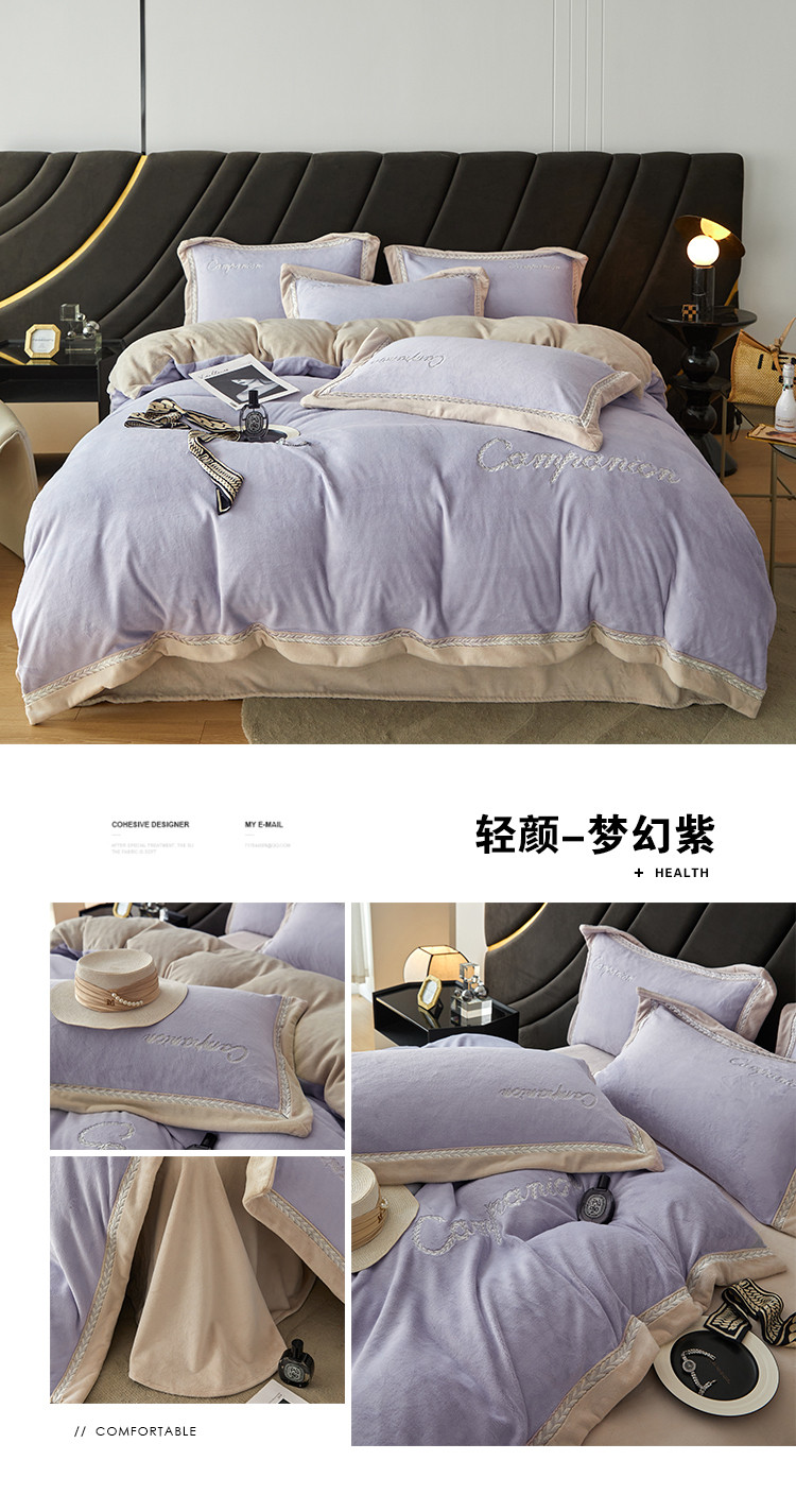 (总)安妮 新品A类高克重250克升级版牛奶绒四件套-轻颜