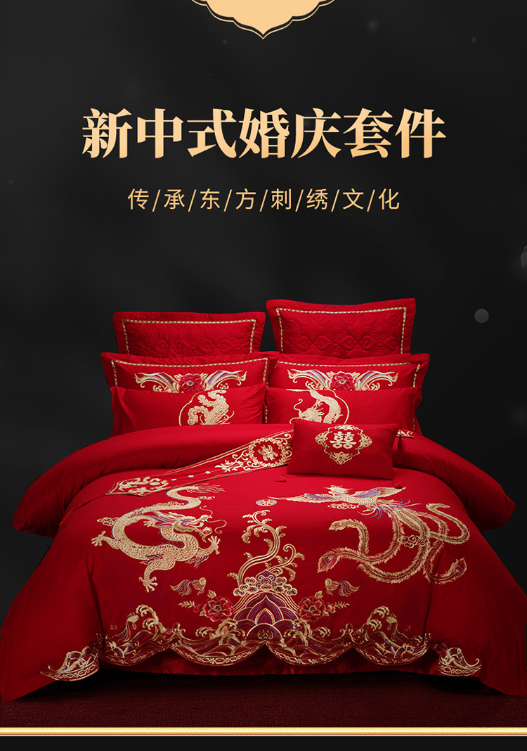 (总)慕她 202560S长绒棉刺绣婚庆四件套-龙凤良缘,龙凤良缘