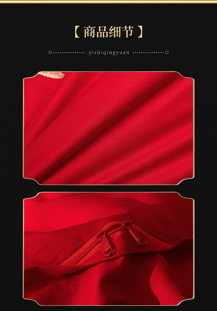 慕她婚庆四件套大红色大花结婚全棉纯棉刺绣花多件套直播 盘龙舞凤