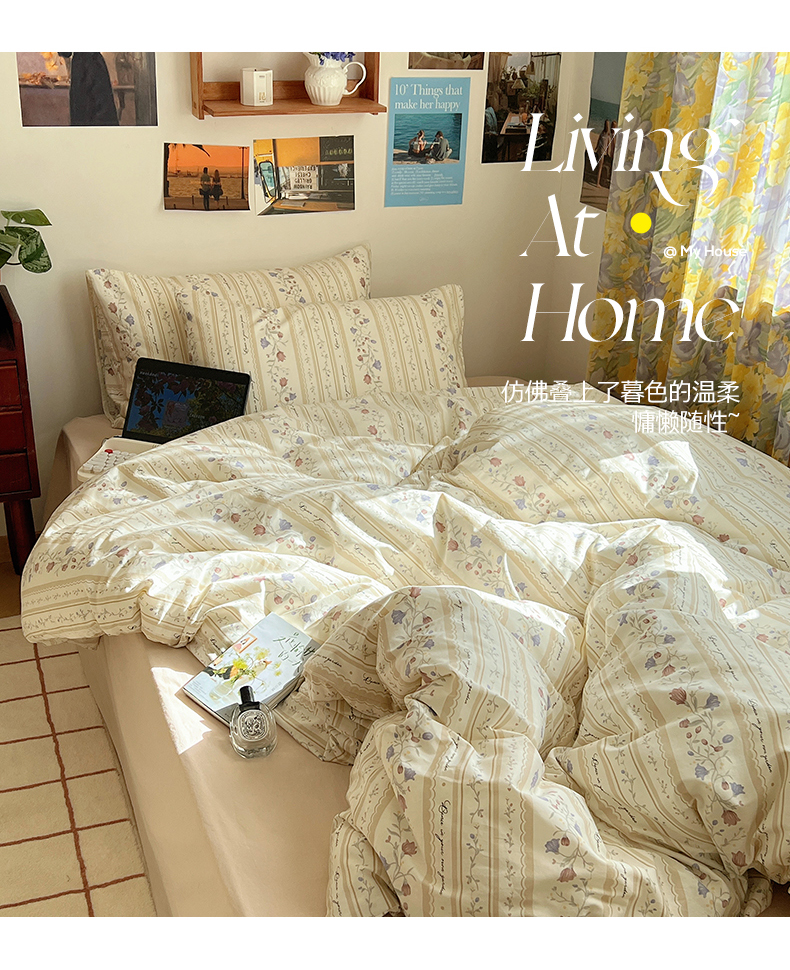(总)六巷胡同 2026新款韩系INS博主风40S全棉色织提花四件套,弥花集-蓝,弥花集-粉,弥花集-黄