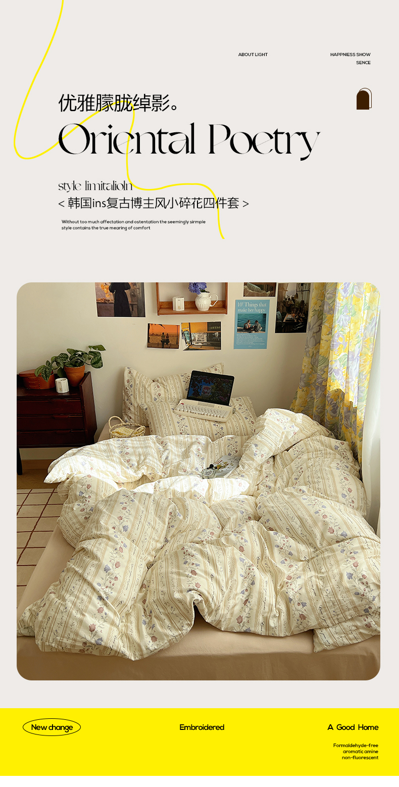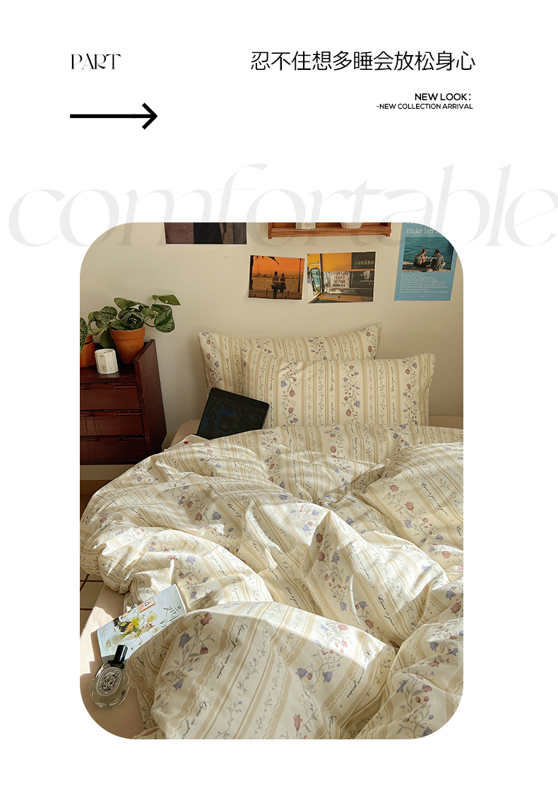 商品名称:六巷胡同 2023新款韩国ins复古博主风小碎花四件套 蔓藤物语