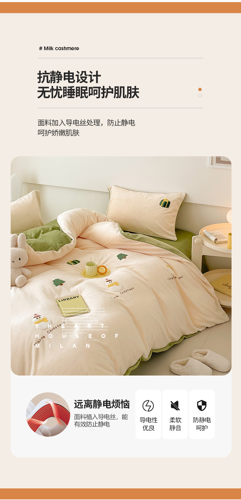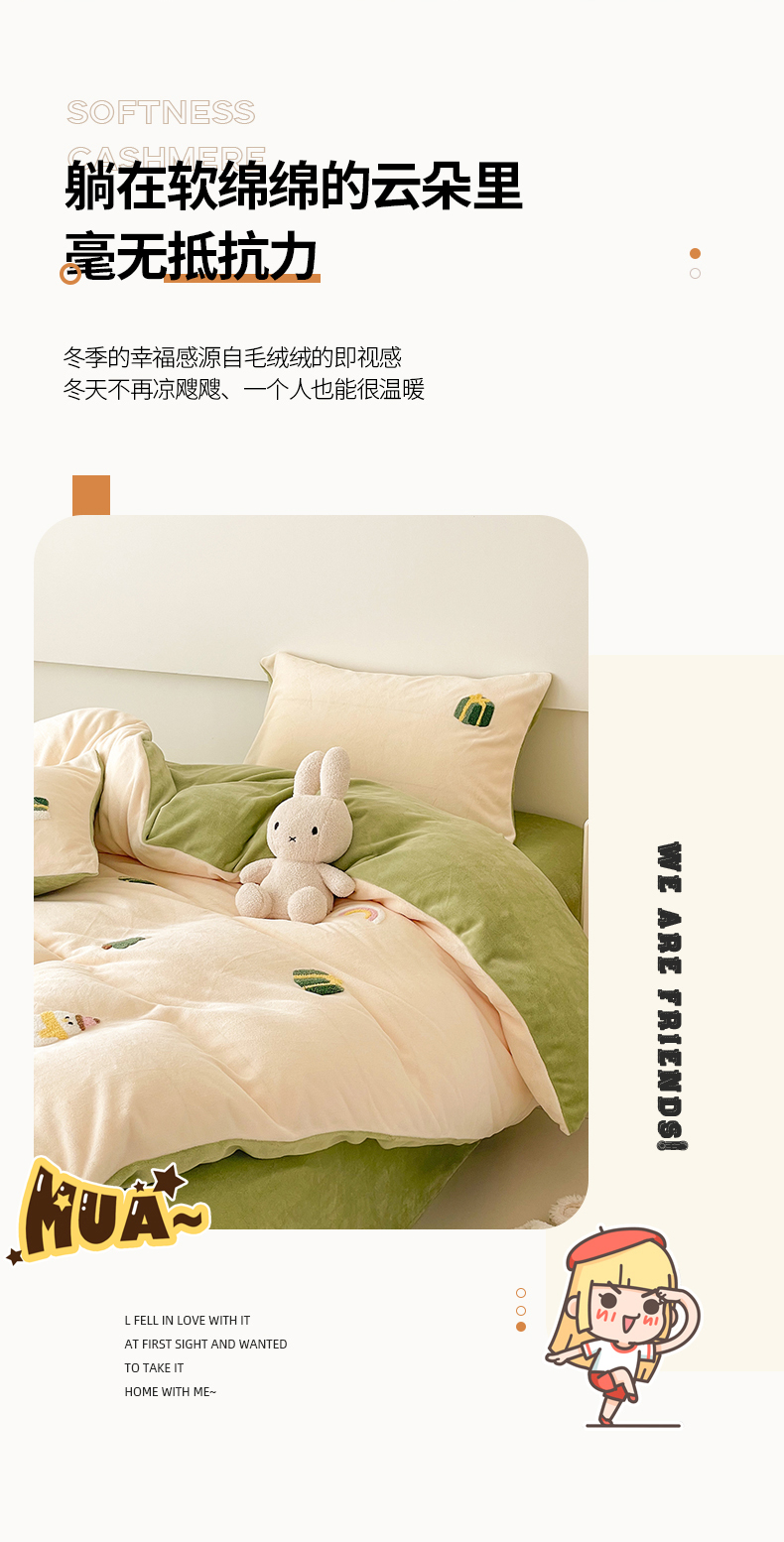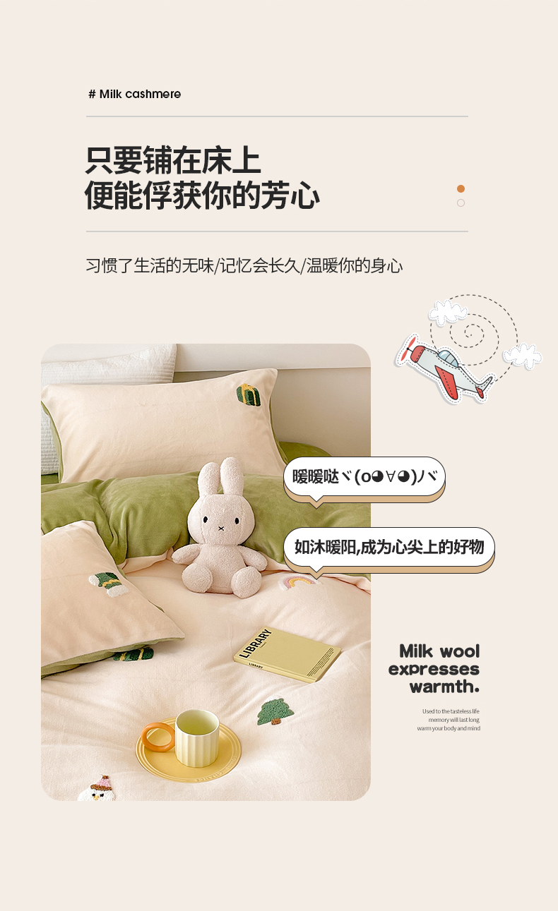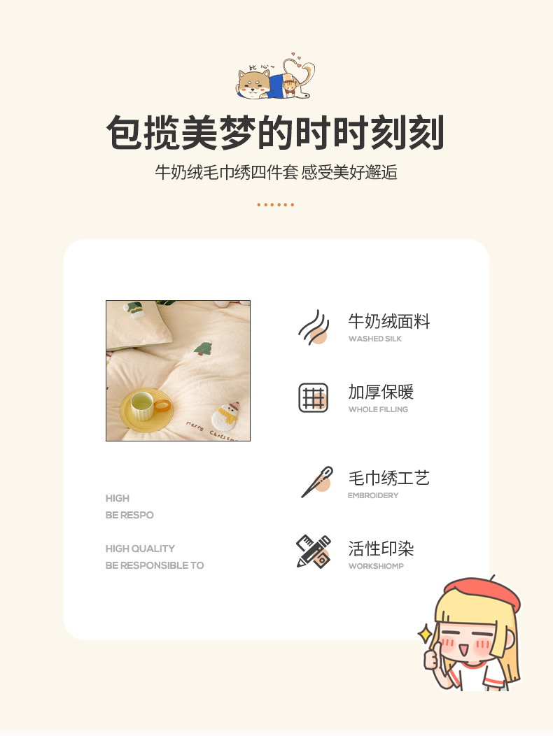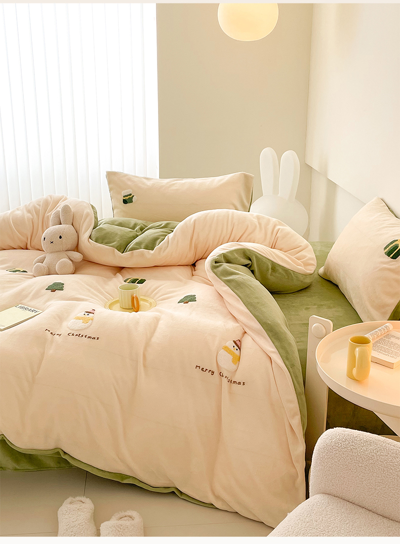 商品名称:沐棉 2023新款高克重牛奶绒毛巾绣四件套 快乐圣诞-米
