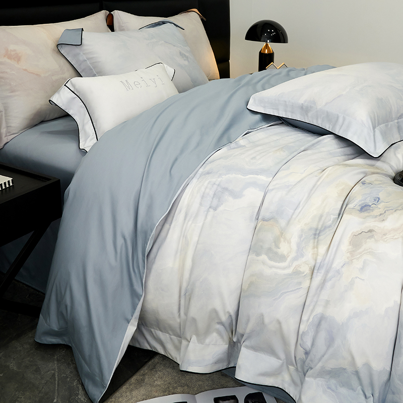 总榻尚家居 2023新款格瑞斯系列100贡缎长绒棉四件套工艺款四件套,格瑞斯紫,格瑞斯白,格瑞斯灰,格瑞斯蓝