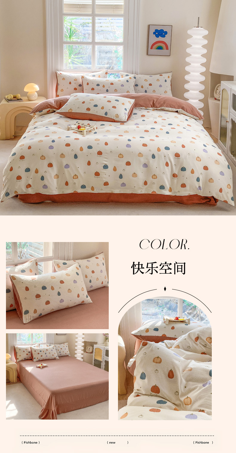 (总)富缦庭 2024新款8-9斤小包边床裙款牛奶绒印花四件套,国色天香,简约主义,蕾丝花园,南瓜派,怦然心动,树影斑驳,银杏叶-橘,银杏叶-蓝