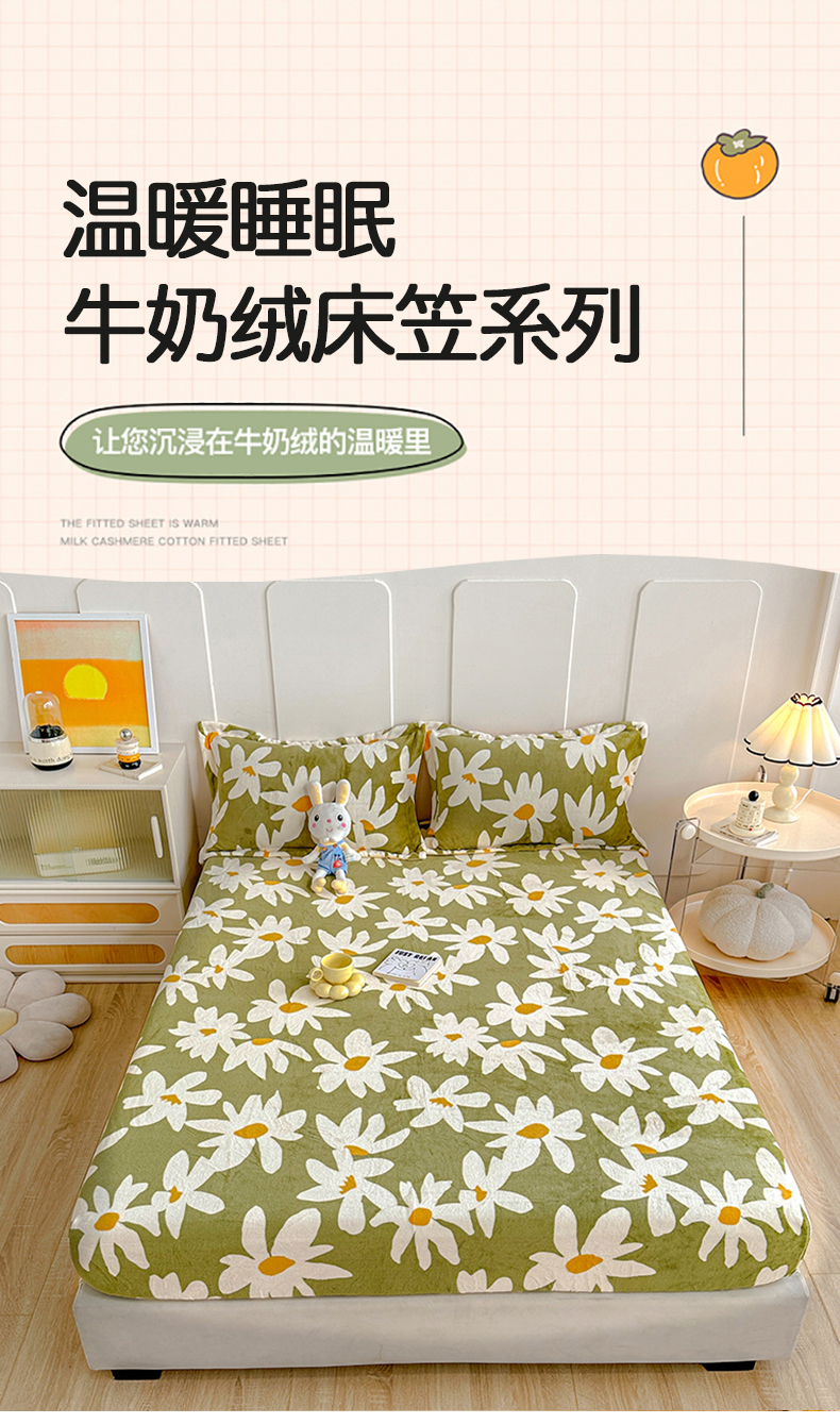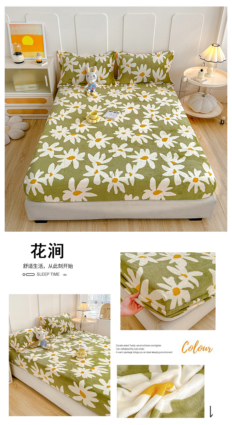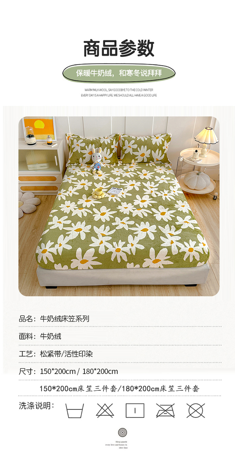 商品名称:卡普二店 2024新款牛奶绒印花单床笠 花涧