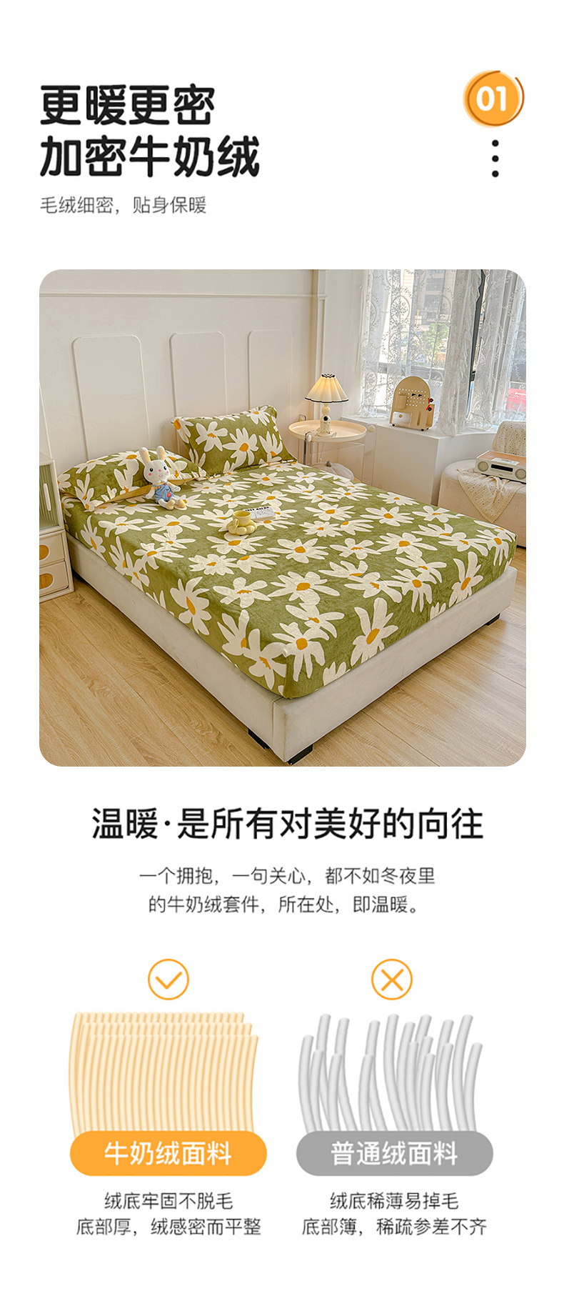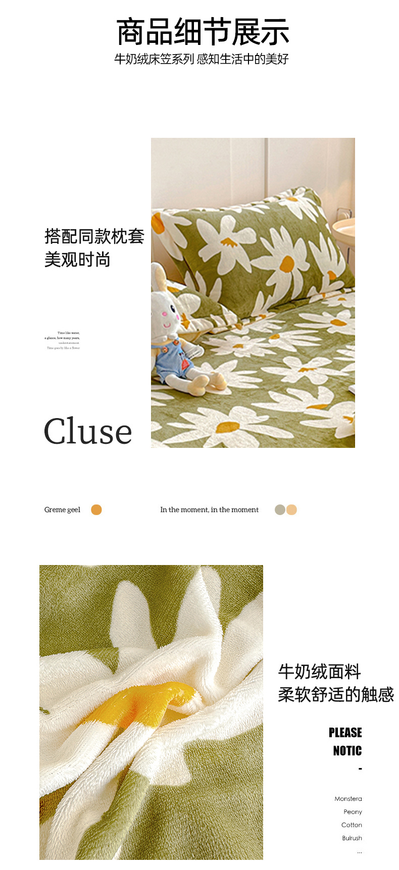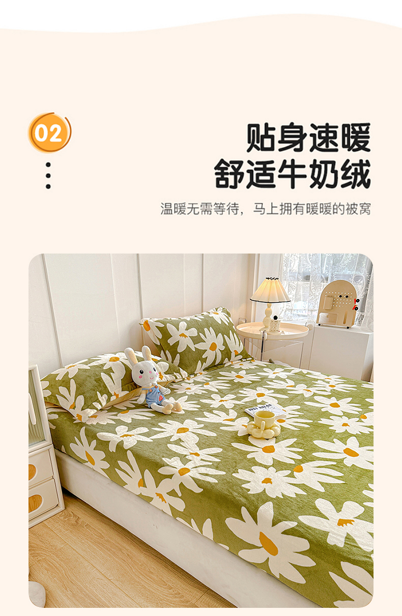 商品名称:卡普二店 2024新款牛奶绒印花单床笠 花涧