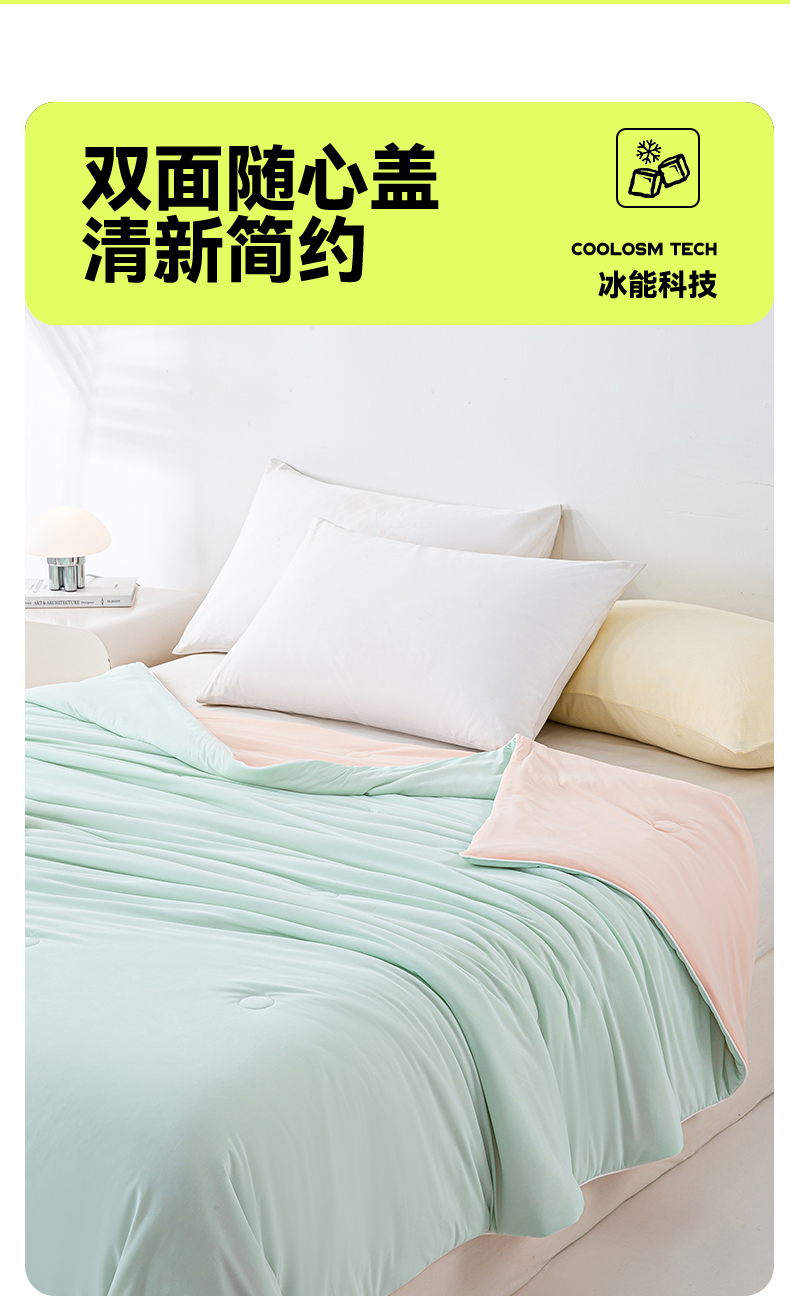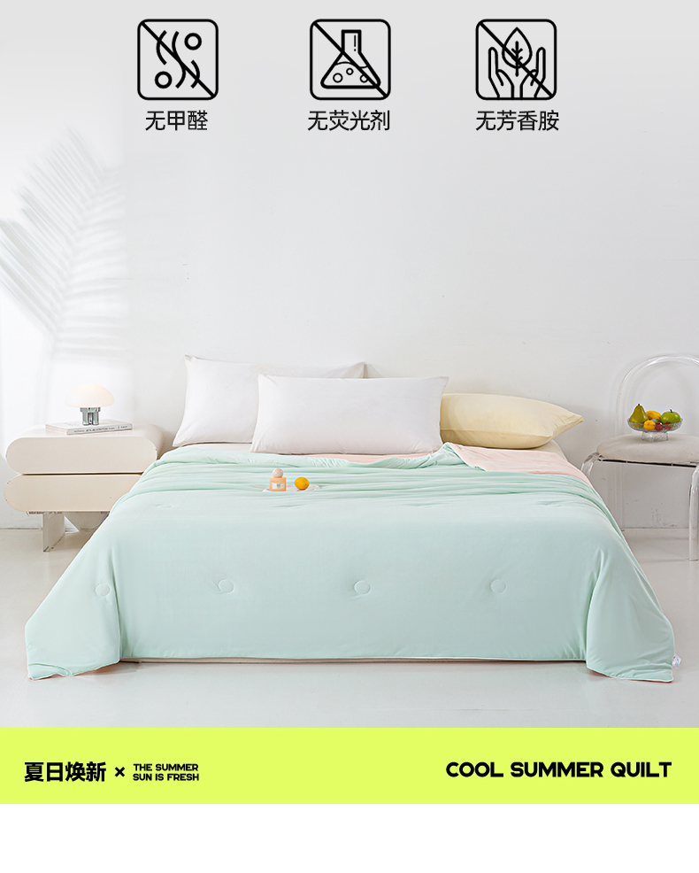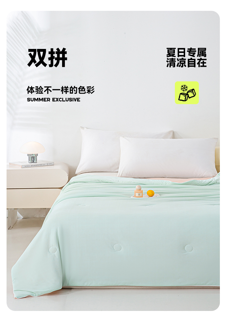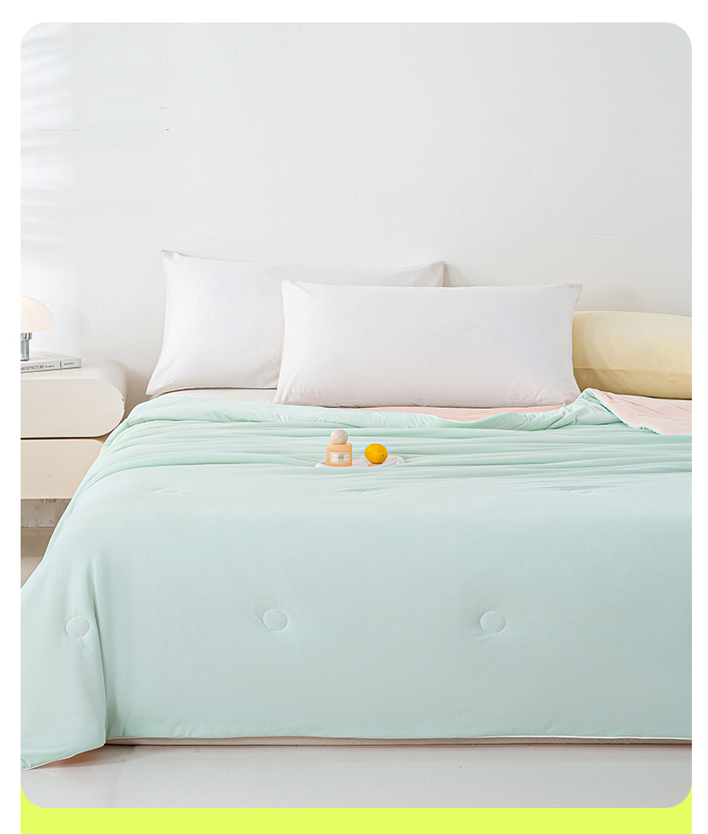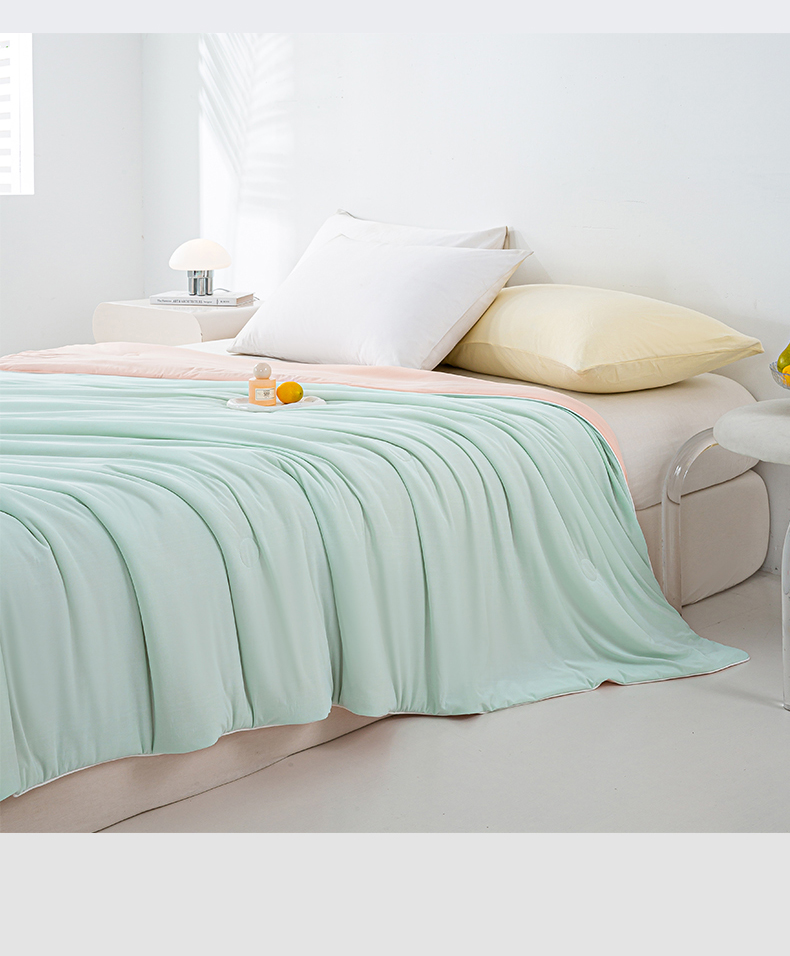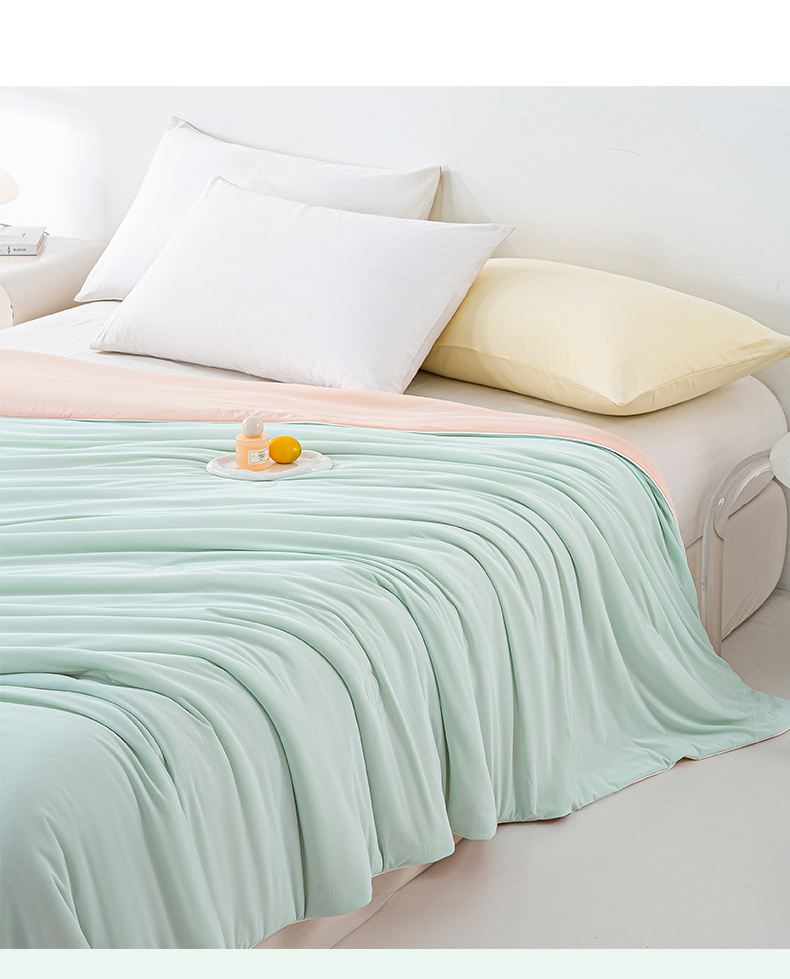 商品名称:米乐被业 2025新款凉感丝双拼夏被夏凉被空调被 冰绿蜜桃