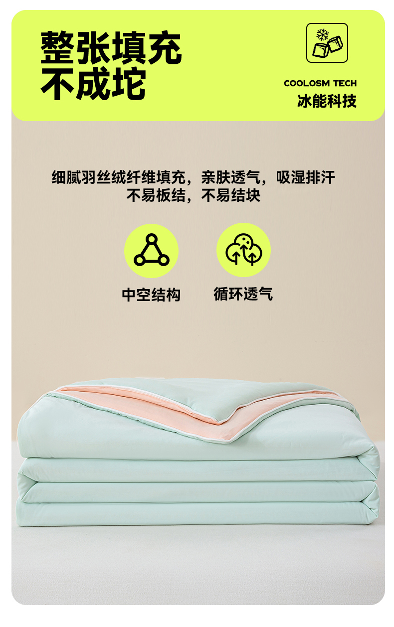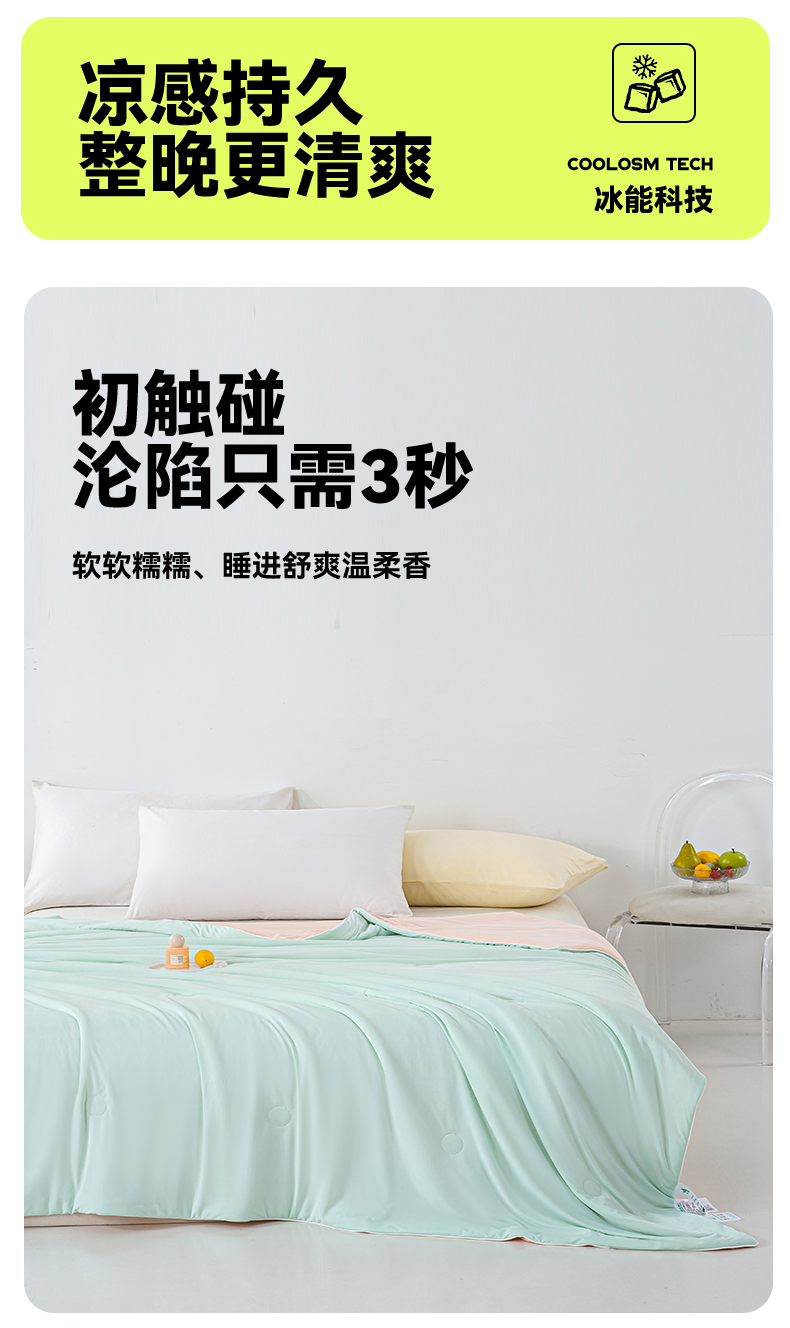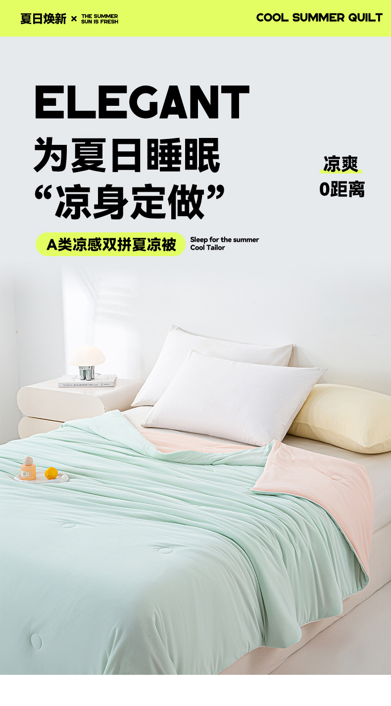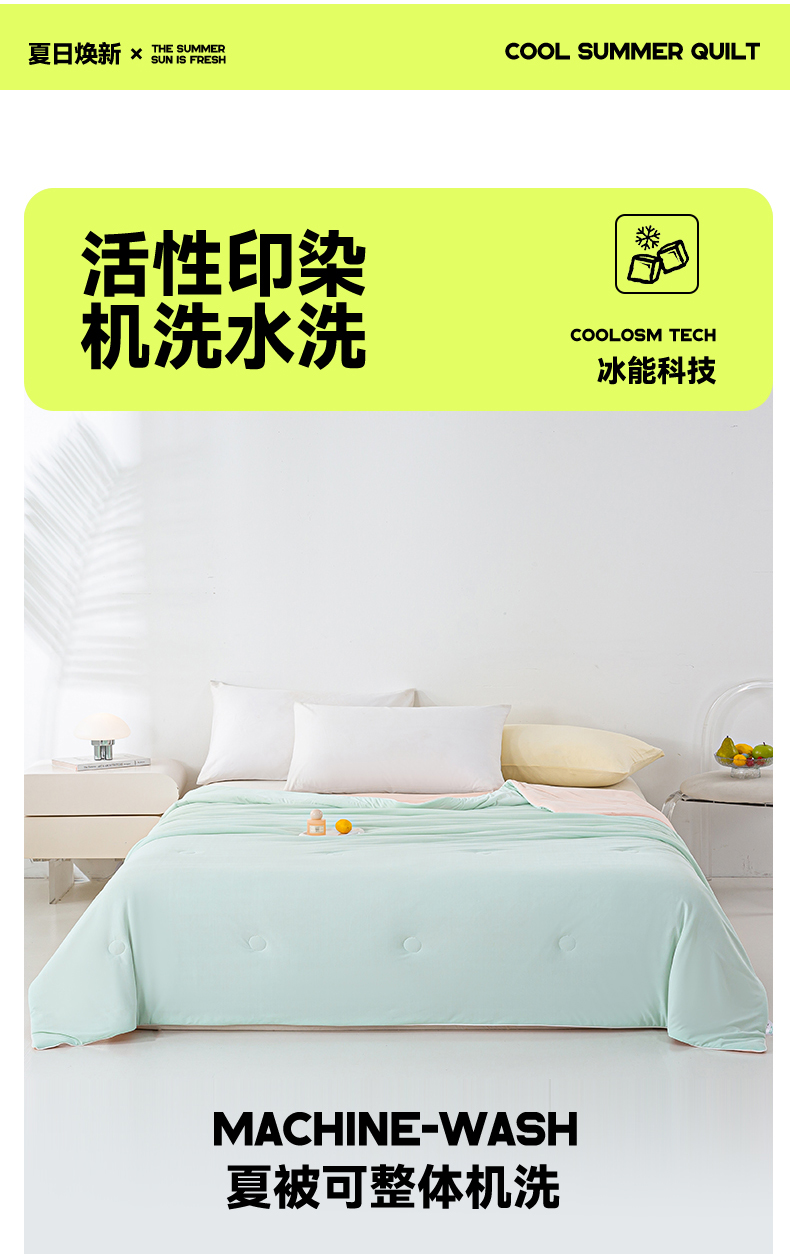 商品名称:米乐被业 2025新款凉感丝双拼夏被夏凉被空调被 冰绿蜜桃