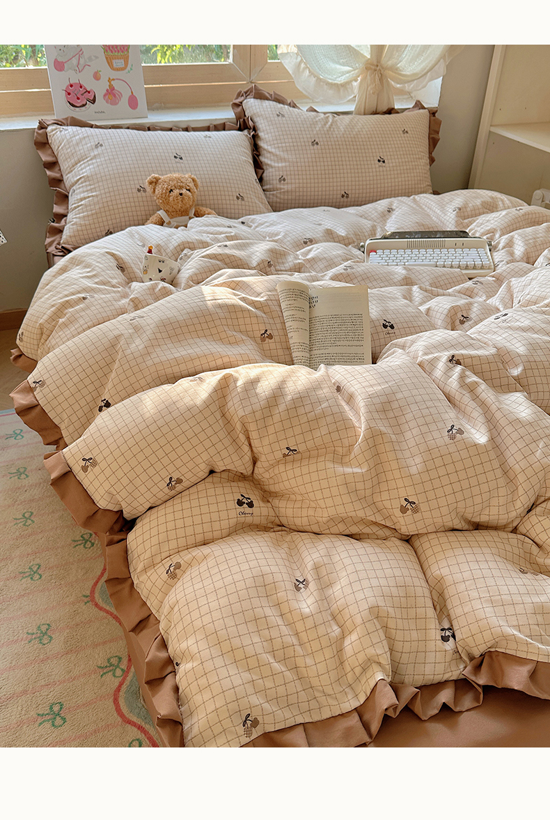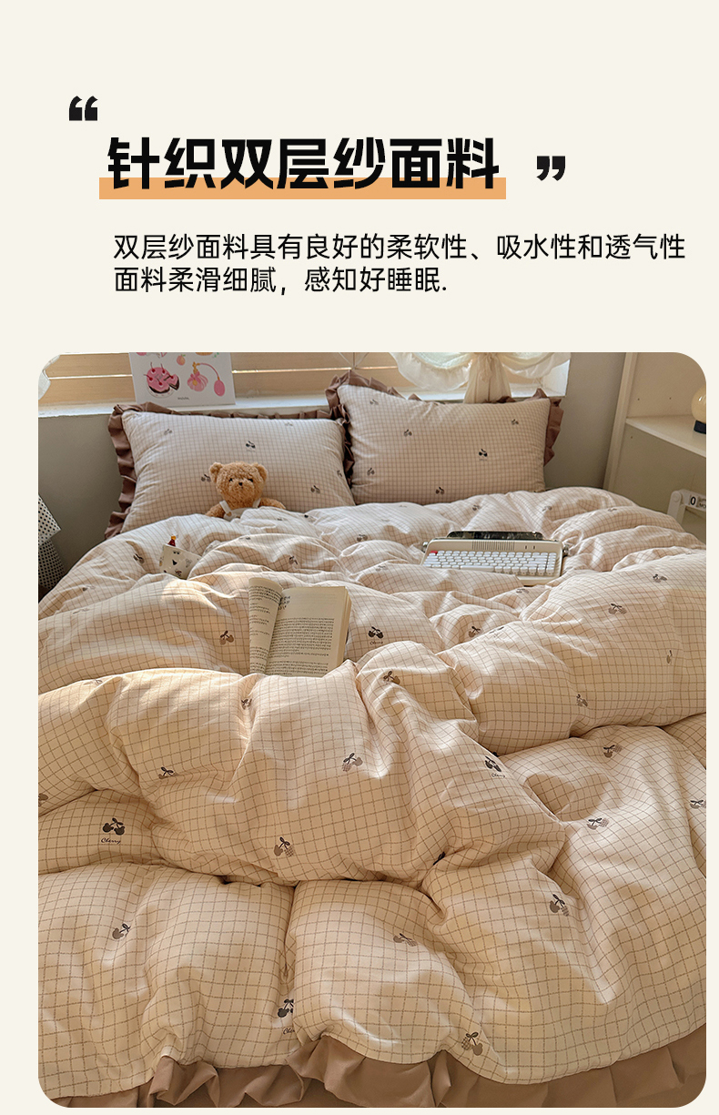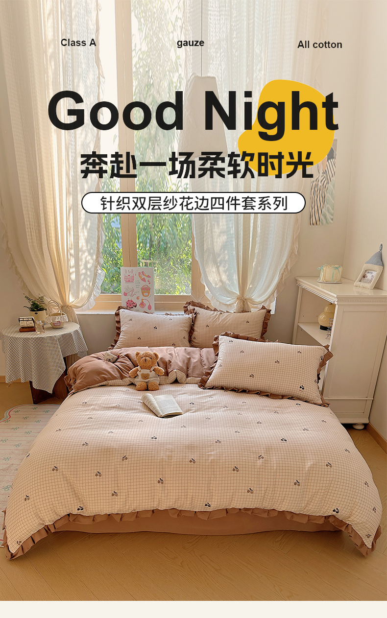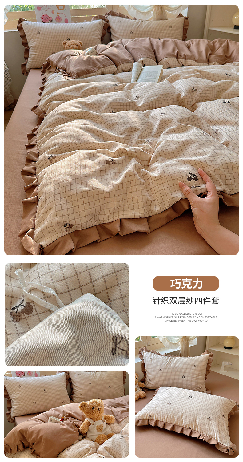 当前位置: 91家纺网 > 商品网购 > 床品套件 > 四件套 > 双层纱四件套 > 韩巢家纺 2025新款针织双层纱花边款被套直播热销款四件套学生宿舍床单三件套-(提供卖家秀) 巧克力