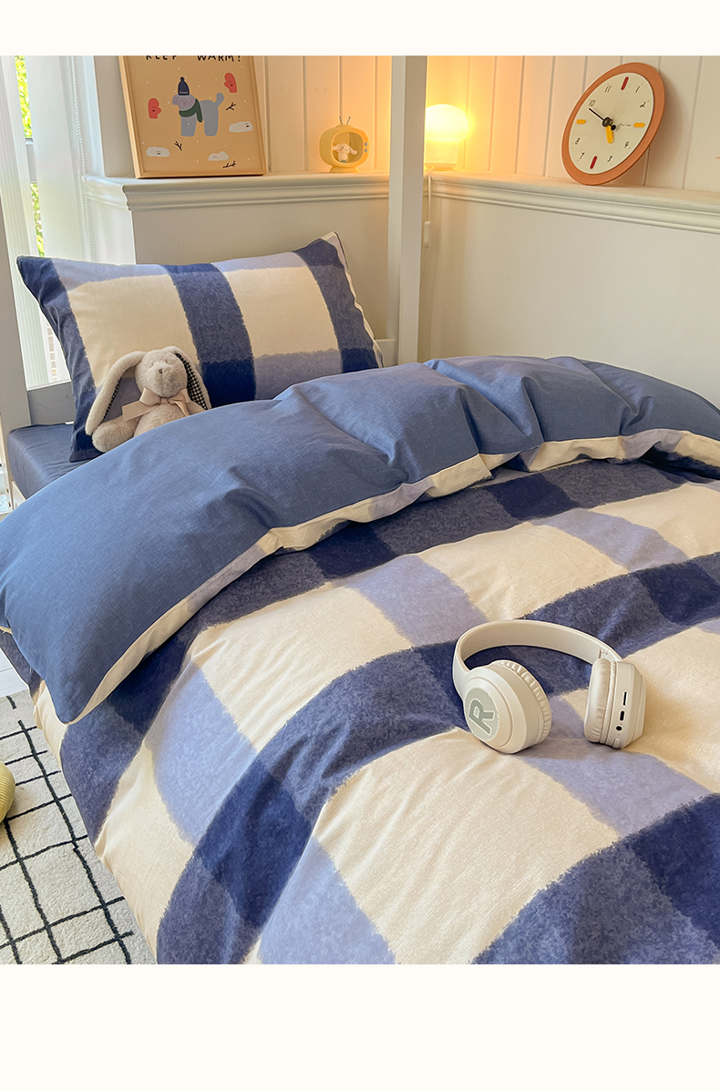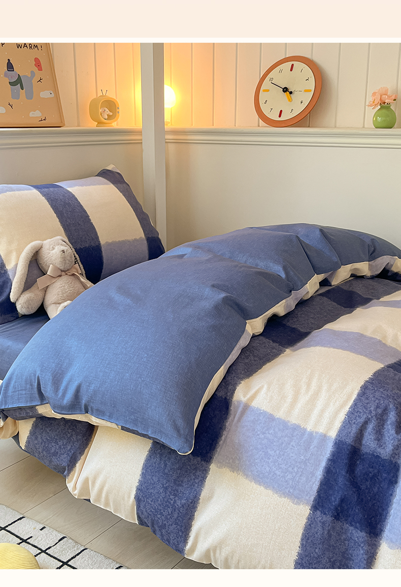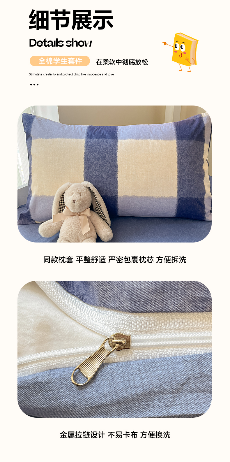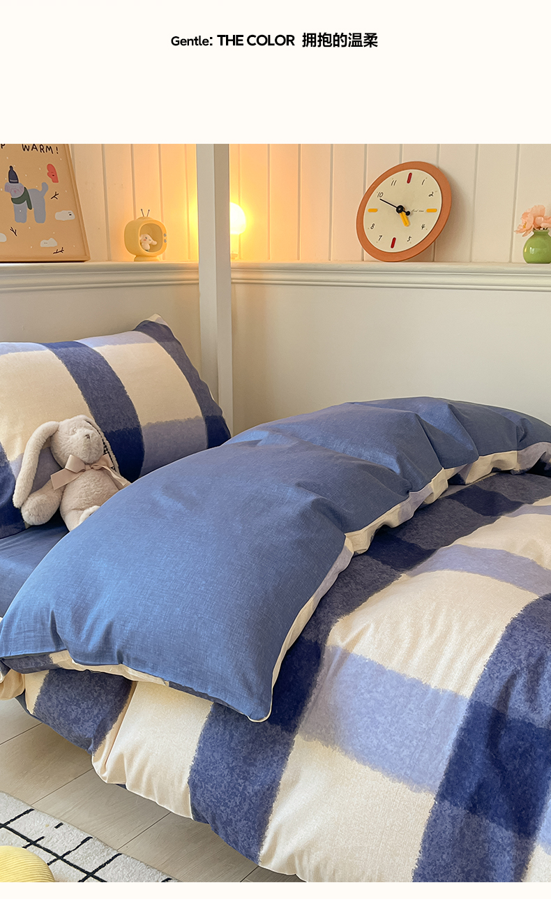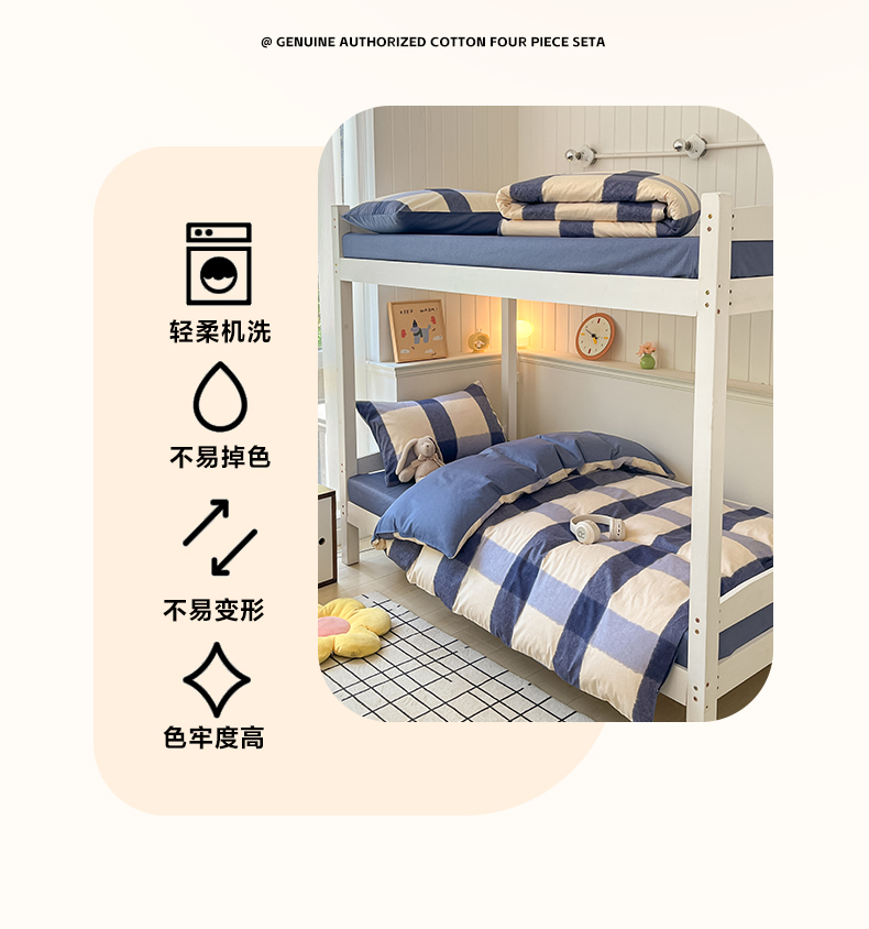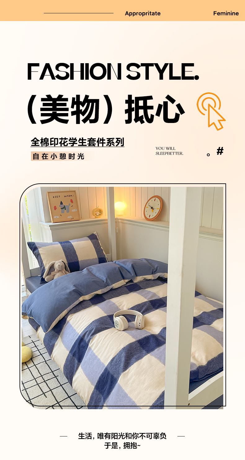当前位置: 91家纺网 > 商品网购 > 床品套件 > 三件套 > 雅居纺家纺 2025新款全棉纯棉印花系列学生宿舍三四件套上下铺三件套 复古格子蓝