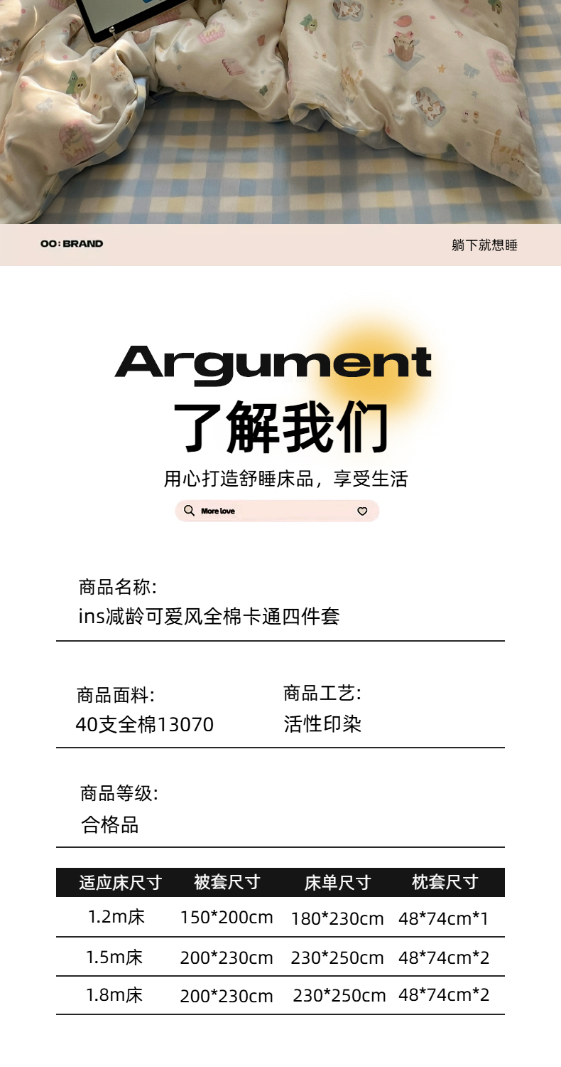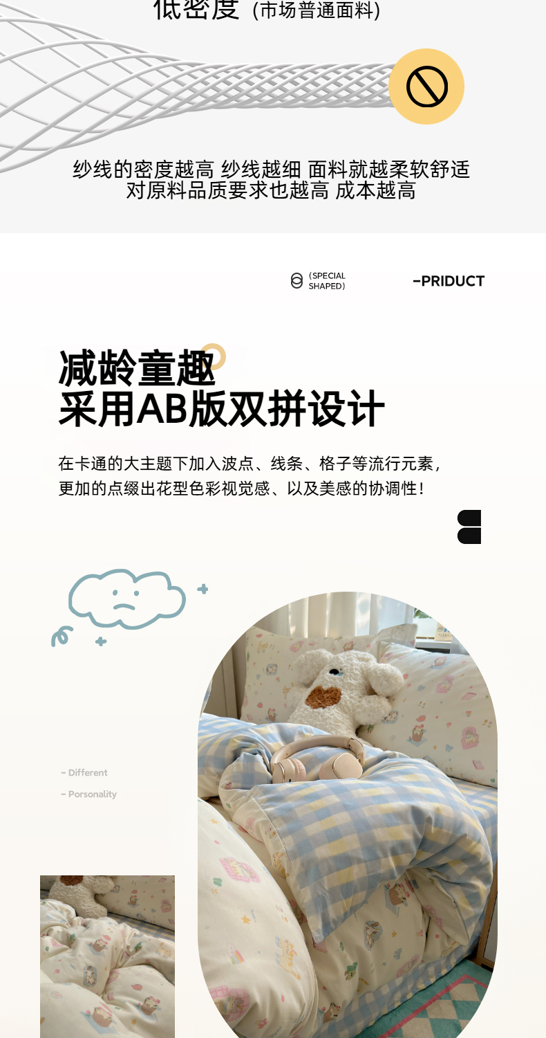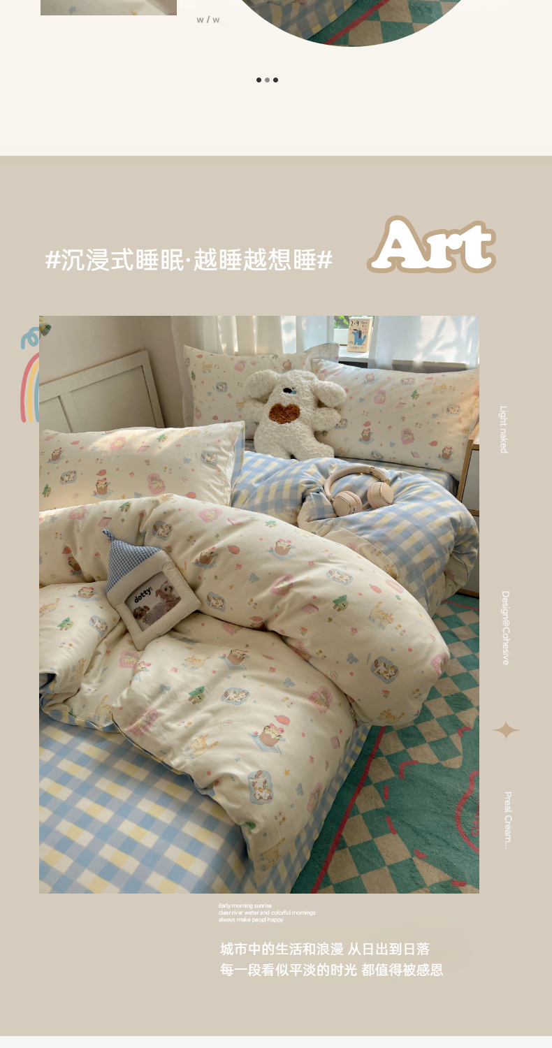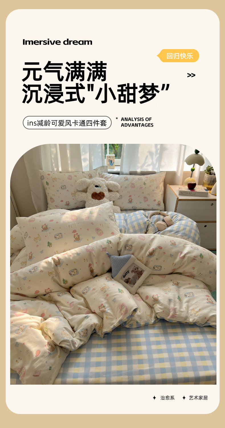 (总)六巷胡同 2025新款INS卡通童趣混搭风全棉四件套第二系,混搭-蛋糕围兜熊,混搭-奶油酣睡熊,混搭-奈斯羞羞狗,混搭-小蓝格甜点,混搭-雪糕哈皮熊,混搭-月亮睡睡熊