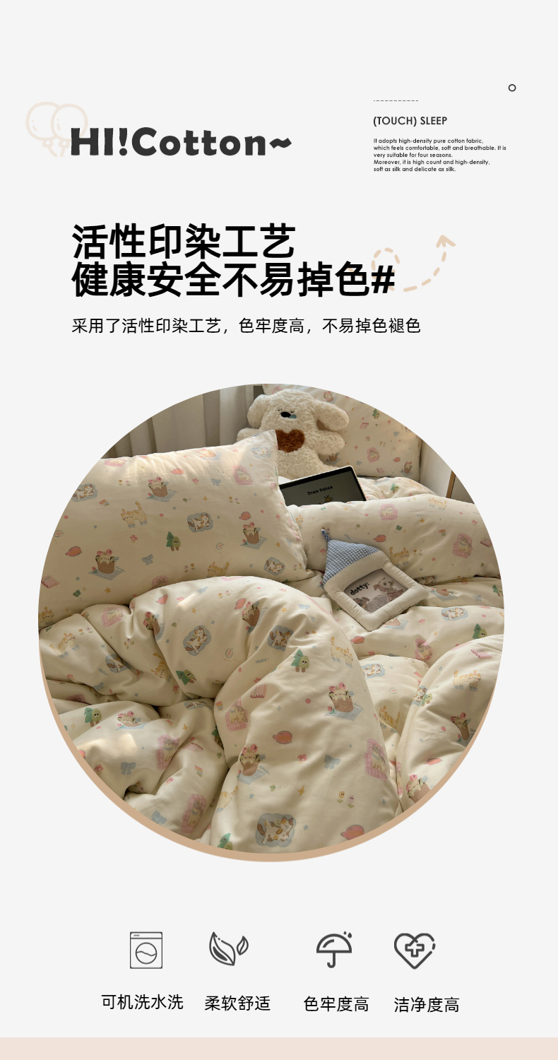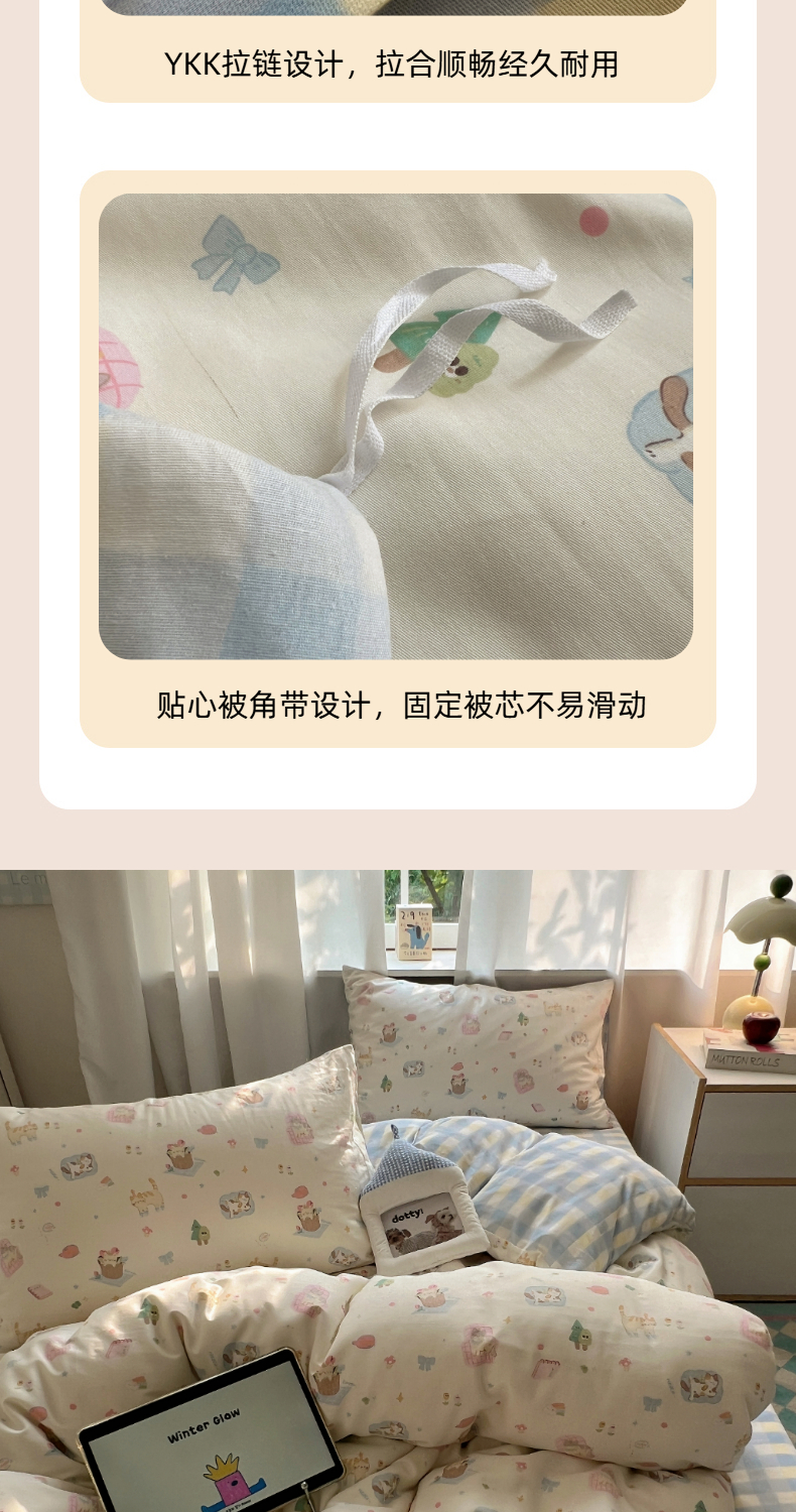 (总)六巷胡同 2025新款INS童趣可爱风卡通全棉四件套-第四系,彩虹甜筒猫,草莓害羞喵,粉格元气猫,咖格樱桃狗,蓝格嗨皮狗,圣诞麋鹿狗,仙人掌粉象,熊熊猫咪崽