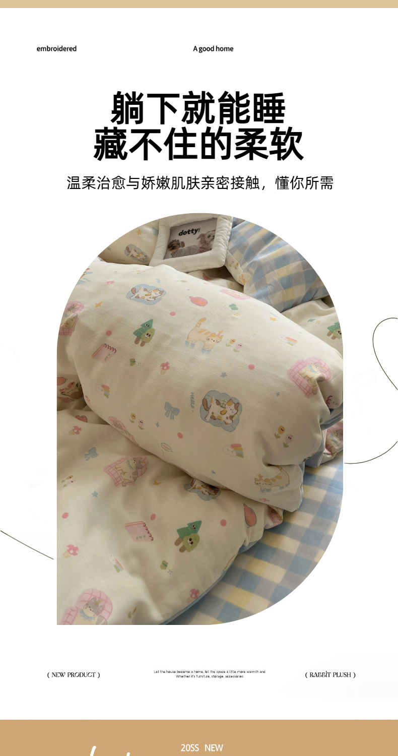 商品名称:六巷胡同 2025新款INS卡通减龄可爱风全棉四件套(开学季系列) 沙发慵懒猫