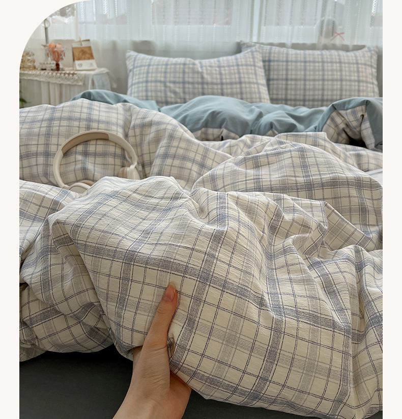 (总)名品家纺 2026新款古法水洗仿棉云感纱四件套 提供买家秀,方格草莓,彩色草莓,蝴蝶结,蓝小格,露丝,森林,手绘小马,甜心兔,吐司小熊,小玫瑰,小樱桃,雨沫