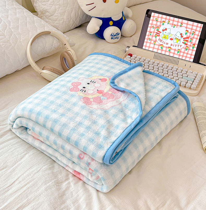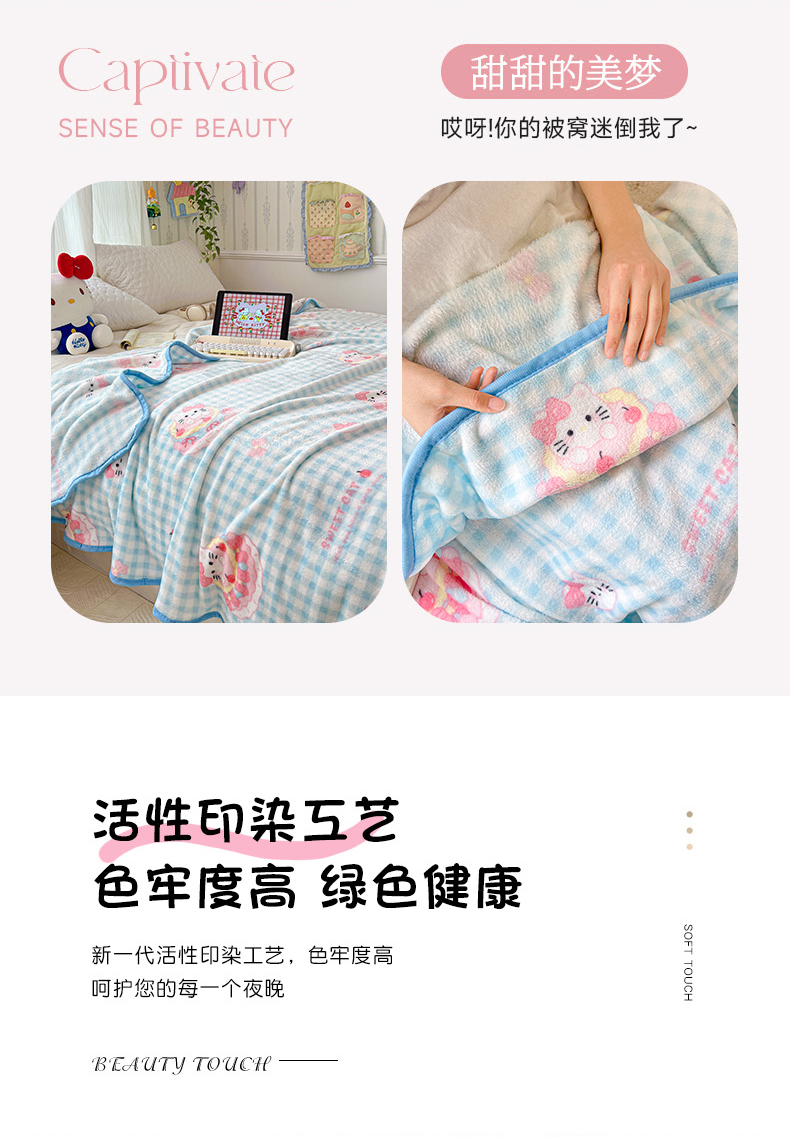 商品名称:富米莱(原臻工厂) 2025新款正版授权三丽鸥高克重卡通牛奶绒毛毯多功能毯子盖毯一搭配亮色包边 一口蛋糕猫