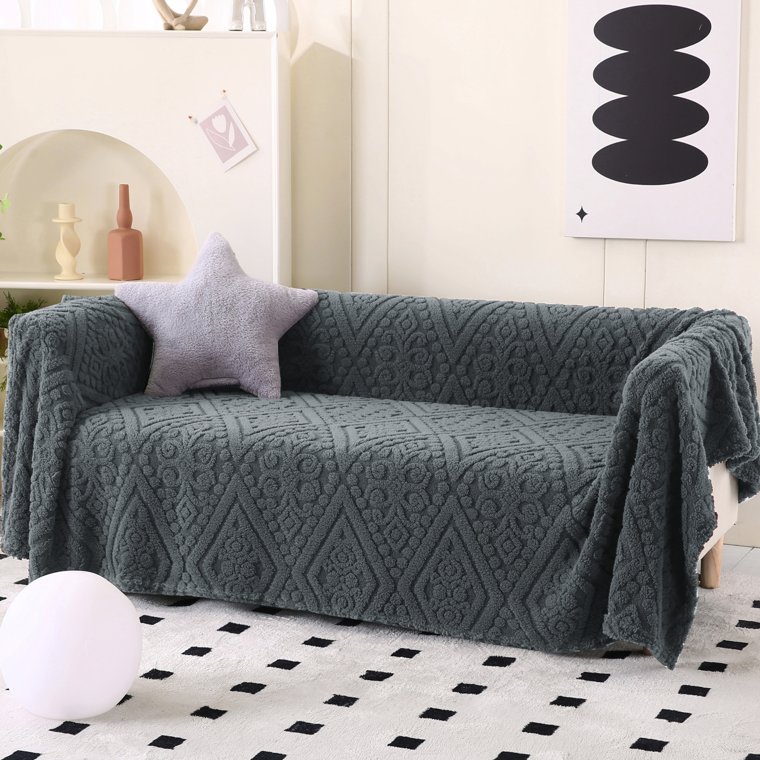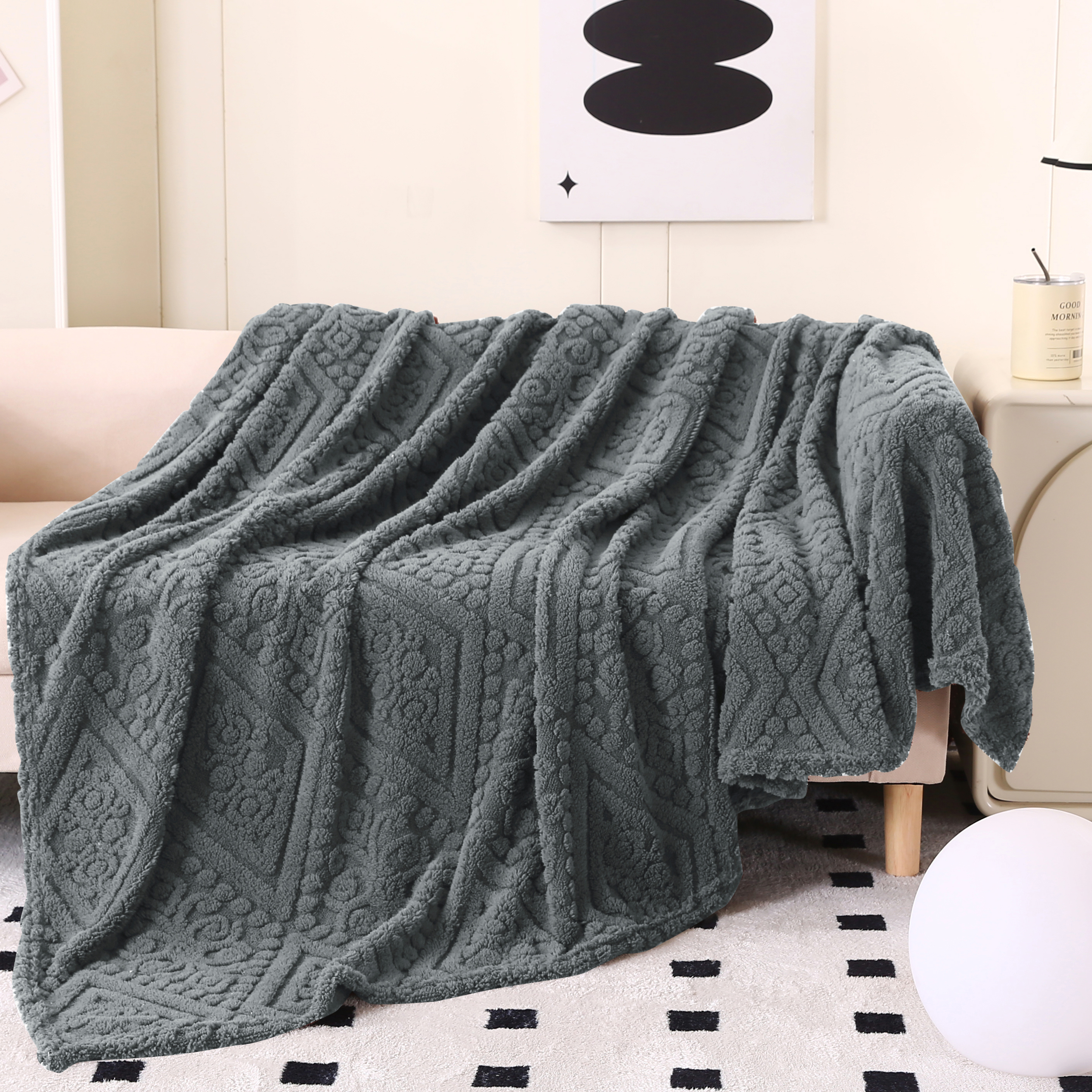 (总)巴木赫 2024新款舒棉绒点点塔芙绒双层配色羊羔绒沙发盖毯,茶绿配色,豆沙配色,灰蓝配色,米白配色,米杏配色,浅粉配色,深灰配色,银灰配色,棕咖配色