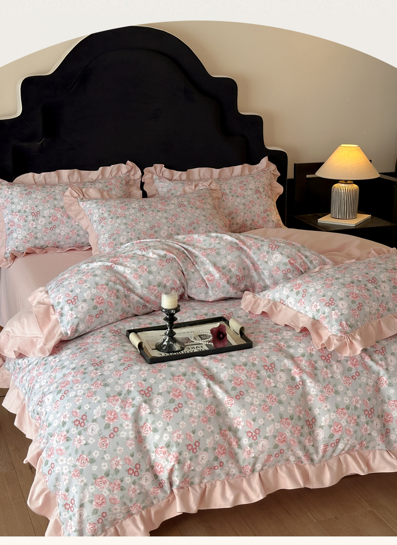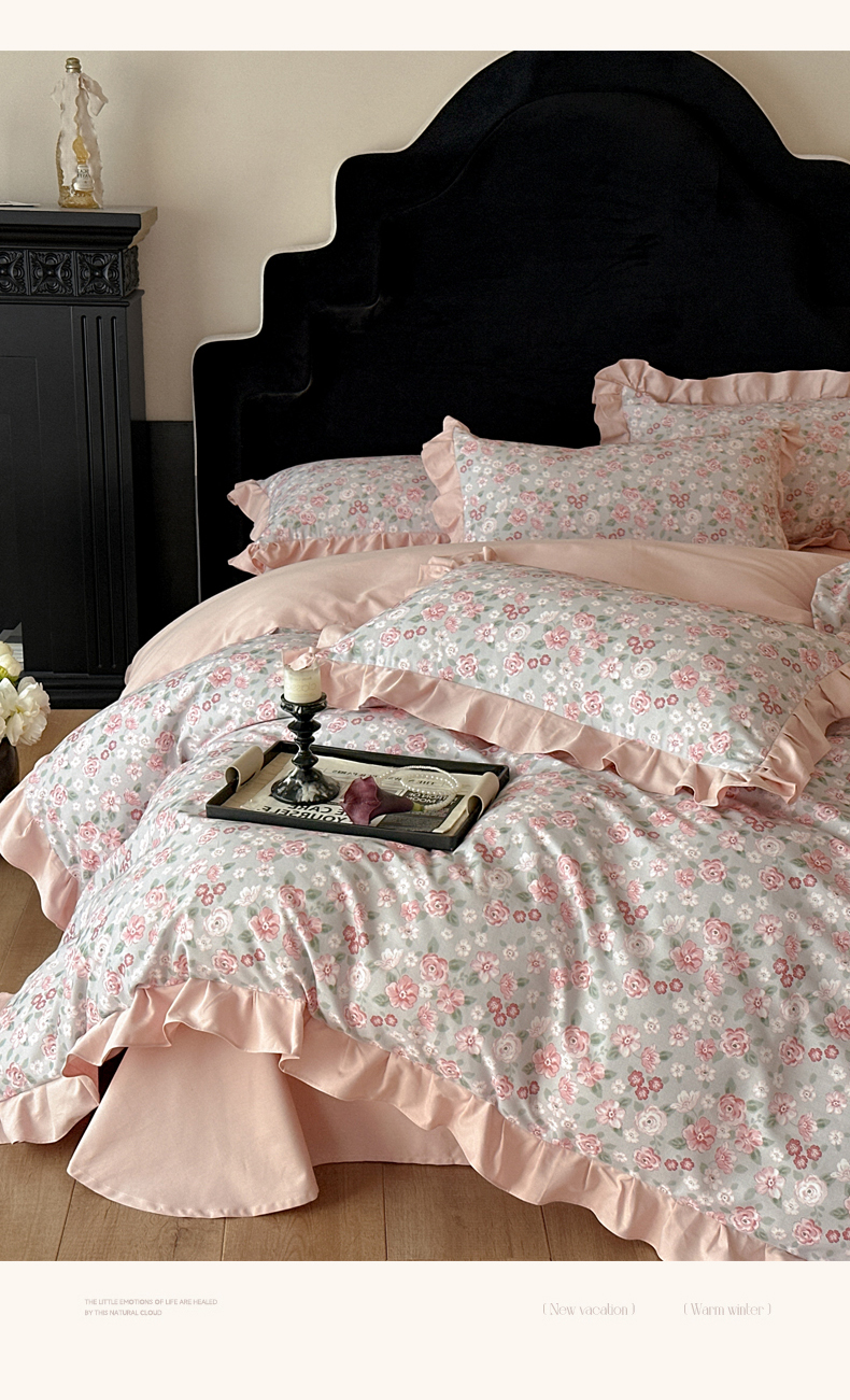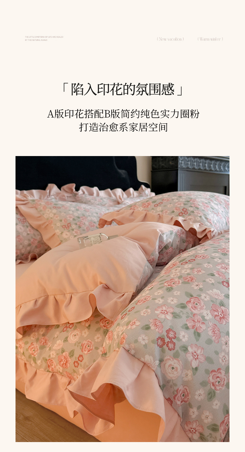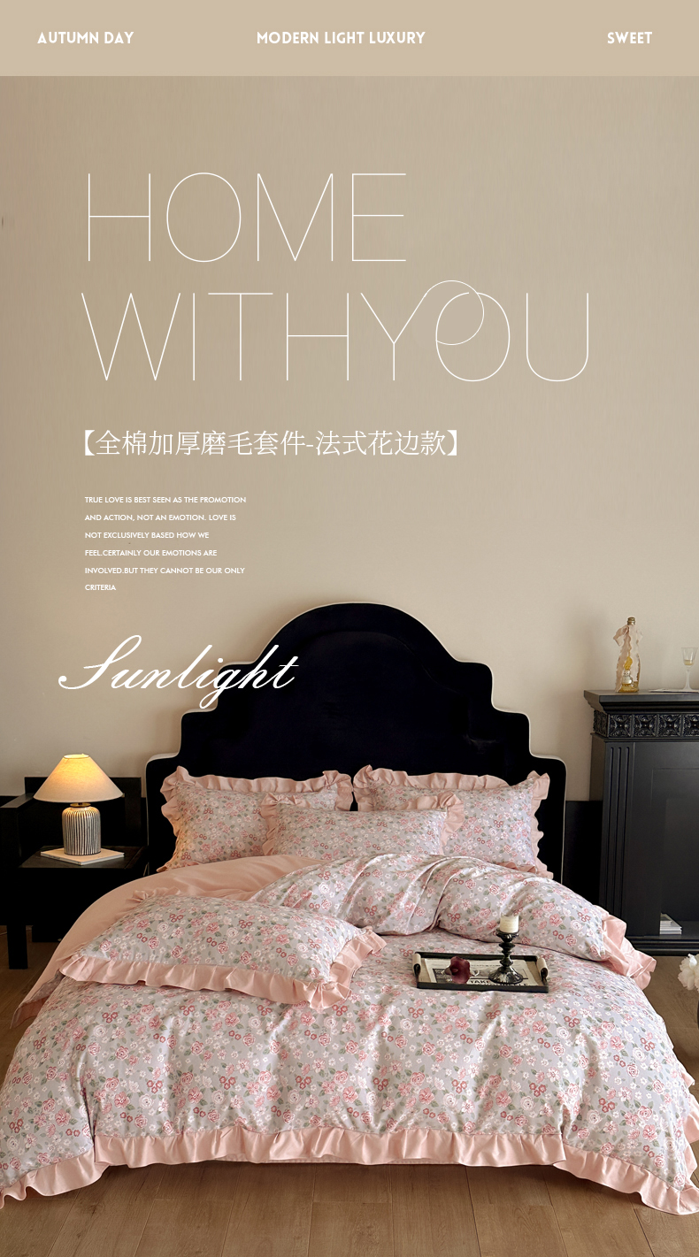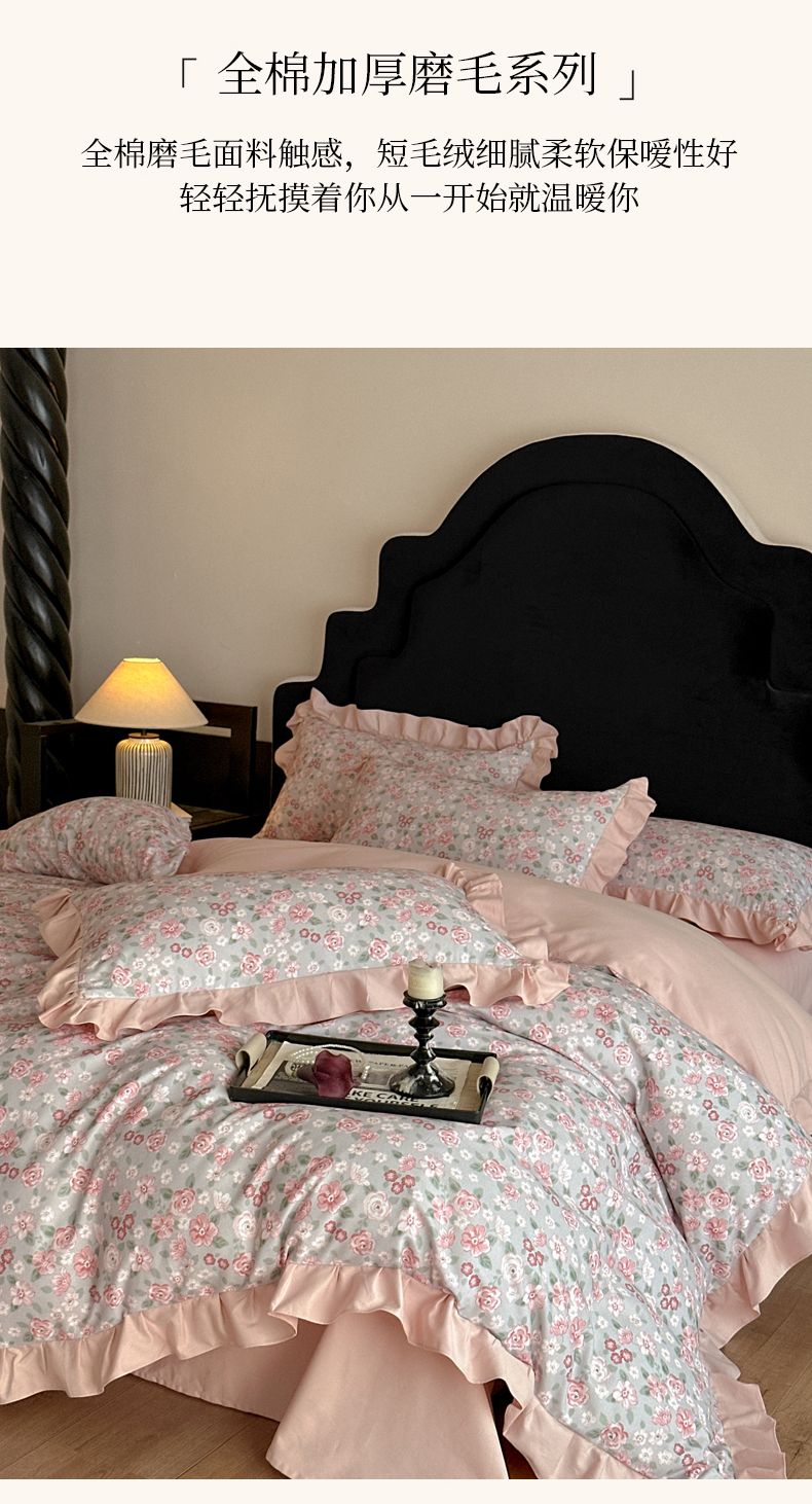 (总)慕晨 2025新款秋冬全棉纯棉加厚磨毛法式花边数码印简奢高级公主风四件套直播热卖