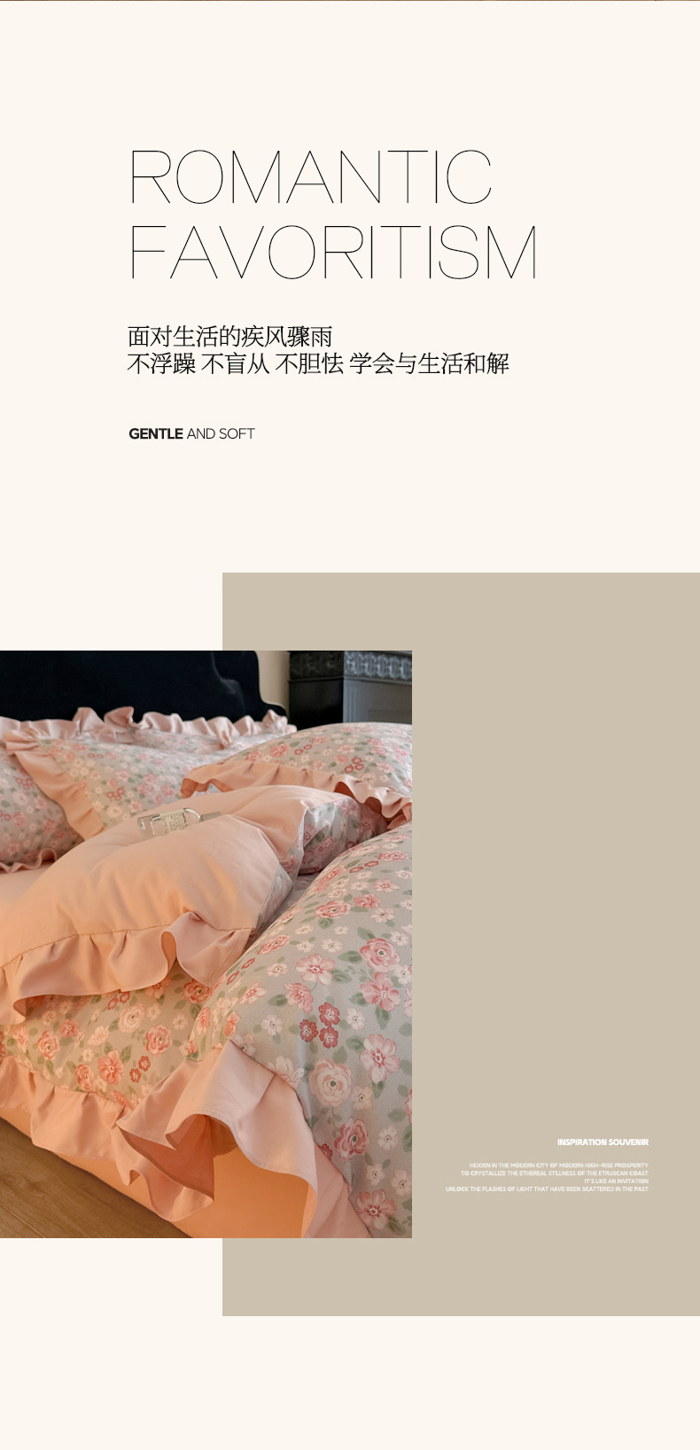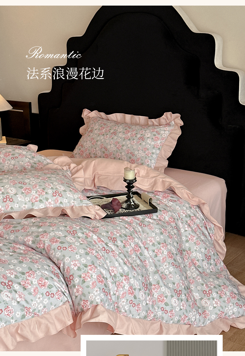 商品名称:(总)慕晨 2025新款秋冬全棉纯棉加厚磨毛法式花边数码印简奢高级公主风四件套直播热卖
