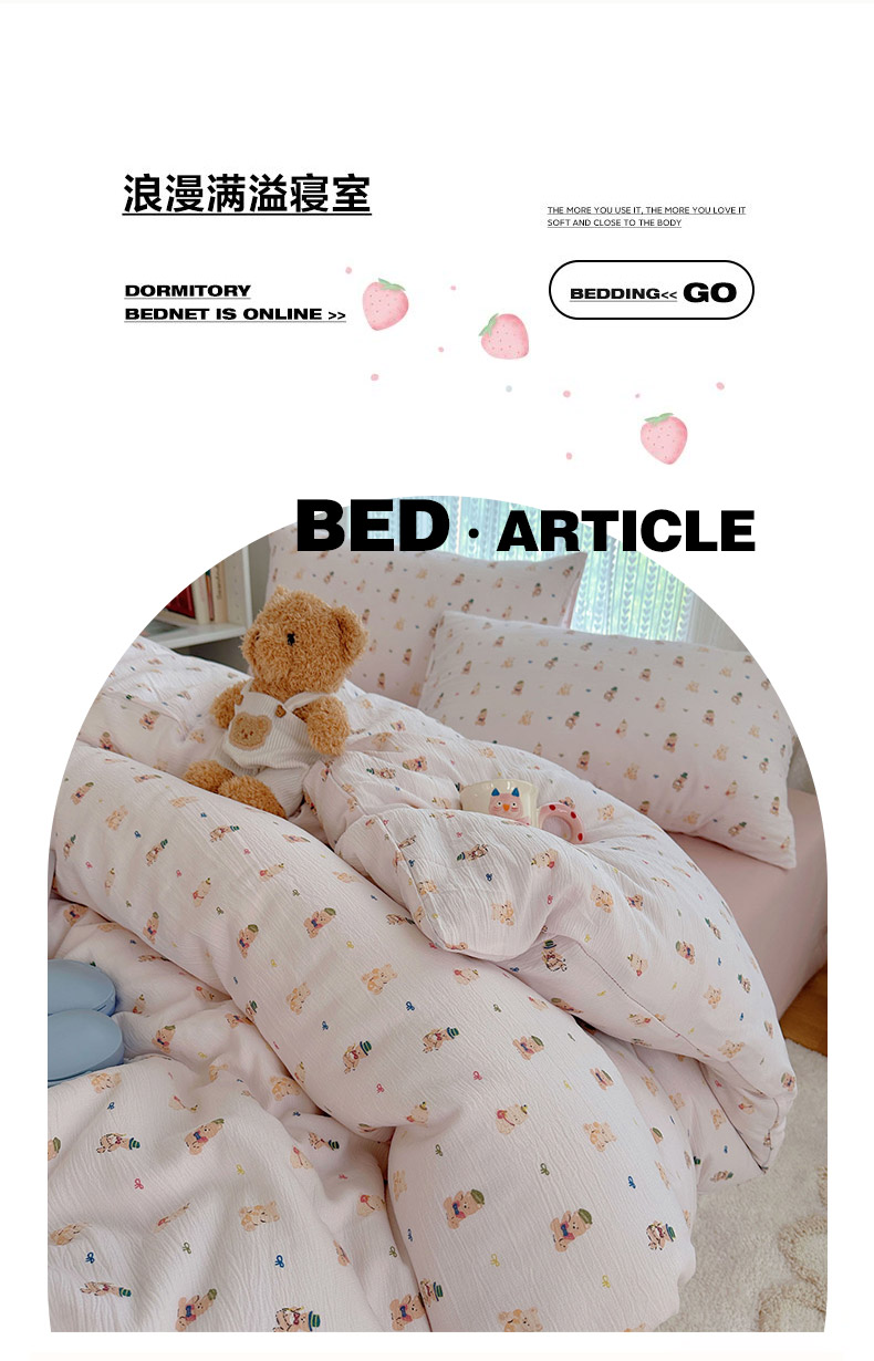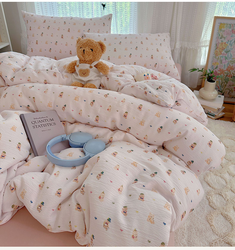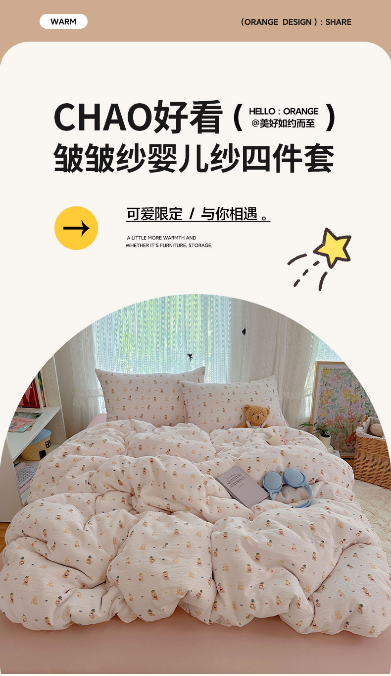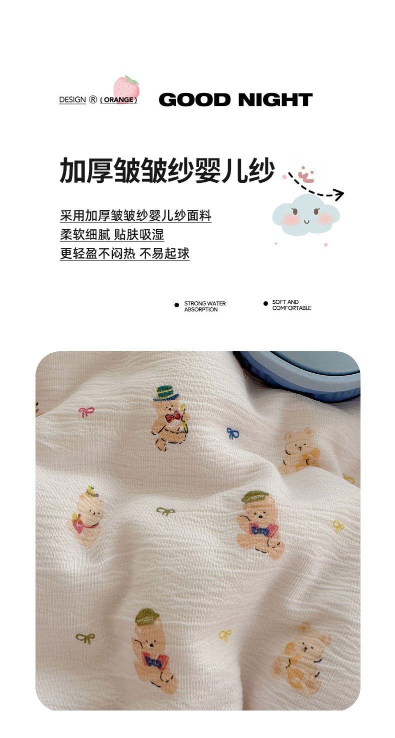 当前位置: 91家纺网 > 商品网购 > 床品套件 > 四件套 > 其它四件套 > 金梦拉家纺 2025新款加厚皱皱纱婴儿纱四件套 小萌物