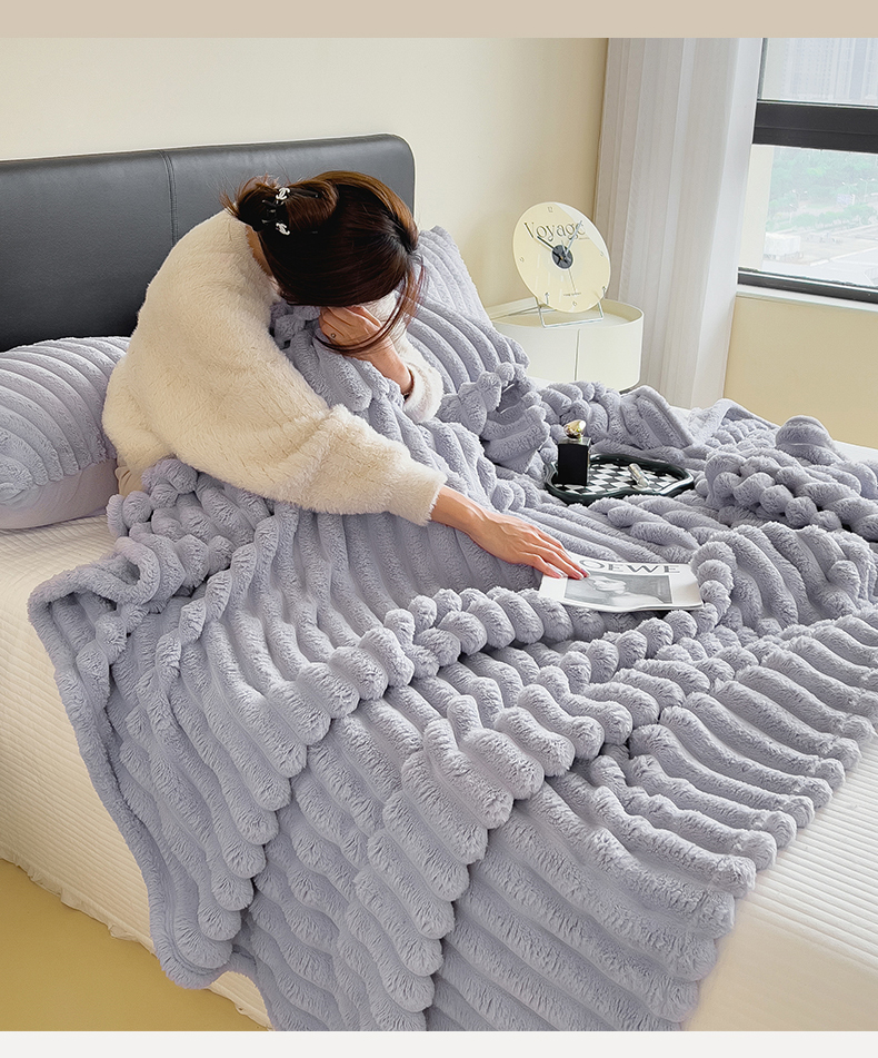 商品名称:亚龙工厂店 2025新款时尚活性抗静电兔绒毛毯毯子 兔毛紫