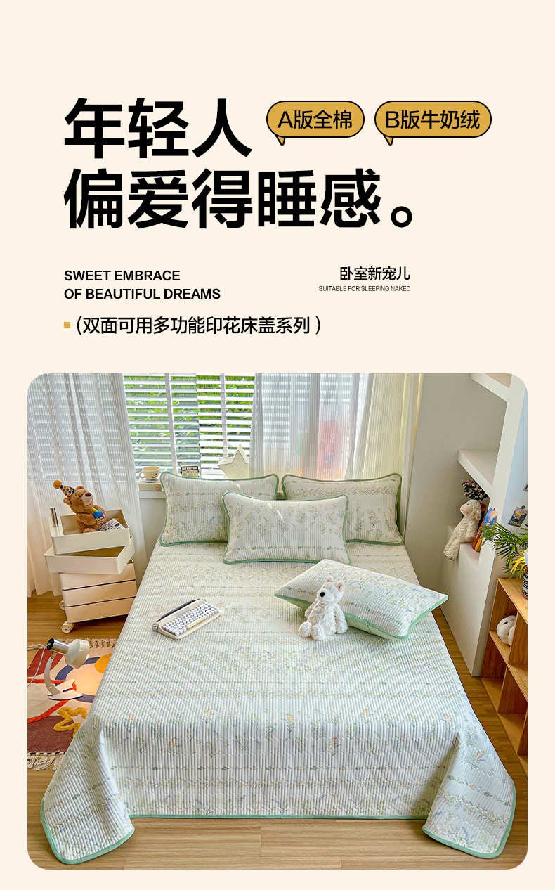 • 91家纺网 家纺一手货源 找家纺 X猫先生 2025新品棉加绒床盖一面全棉一面牛奶绒床盖炕盖加厚床单床垫四季款系列二 丛草集(A棉B绒)