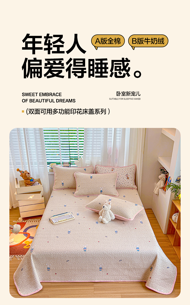 • 91家纺网 家纺一手货源 找家纺 (总)X猫先生 2026新品A全棉B牛奶绒床盖一面全棉一面牛奶绒床盖炕盖加厚床单床垫四季款系列三,焦糖南瓜格(A棉B棉),童年往事(A棉B绒),熊熊告白(A棉B绒),甜心汪星人(A棉B绒),星星柯基(A棉B绒),逗号日记(A棉B绒),莫奈花园(A棉B绒),幸运独角龙(A棉B绒),冒险家(A棉B绒),蘑菇小镇(A棉B绒),蓝格童话(A棉B绒),趴趴熊(A棉B绒),丹麦女孩(A棉B绒),春游兔兔(A棉B绒),贝利花都(A棉B绒),萌萌鸭(A棉B绒),花田囡囡(A棉B绒),哈哈狗(A棉B绒),丛草集(A棉B绒),奶呼小兔(A棉B绒),拉布兔兔(A棉B绒),繁花小熊(A棉B绒),甜心苹果派(A棉B绒),组合图